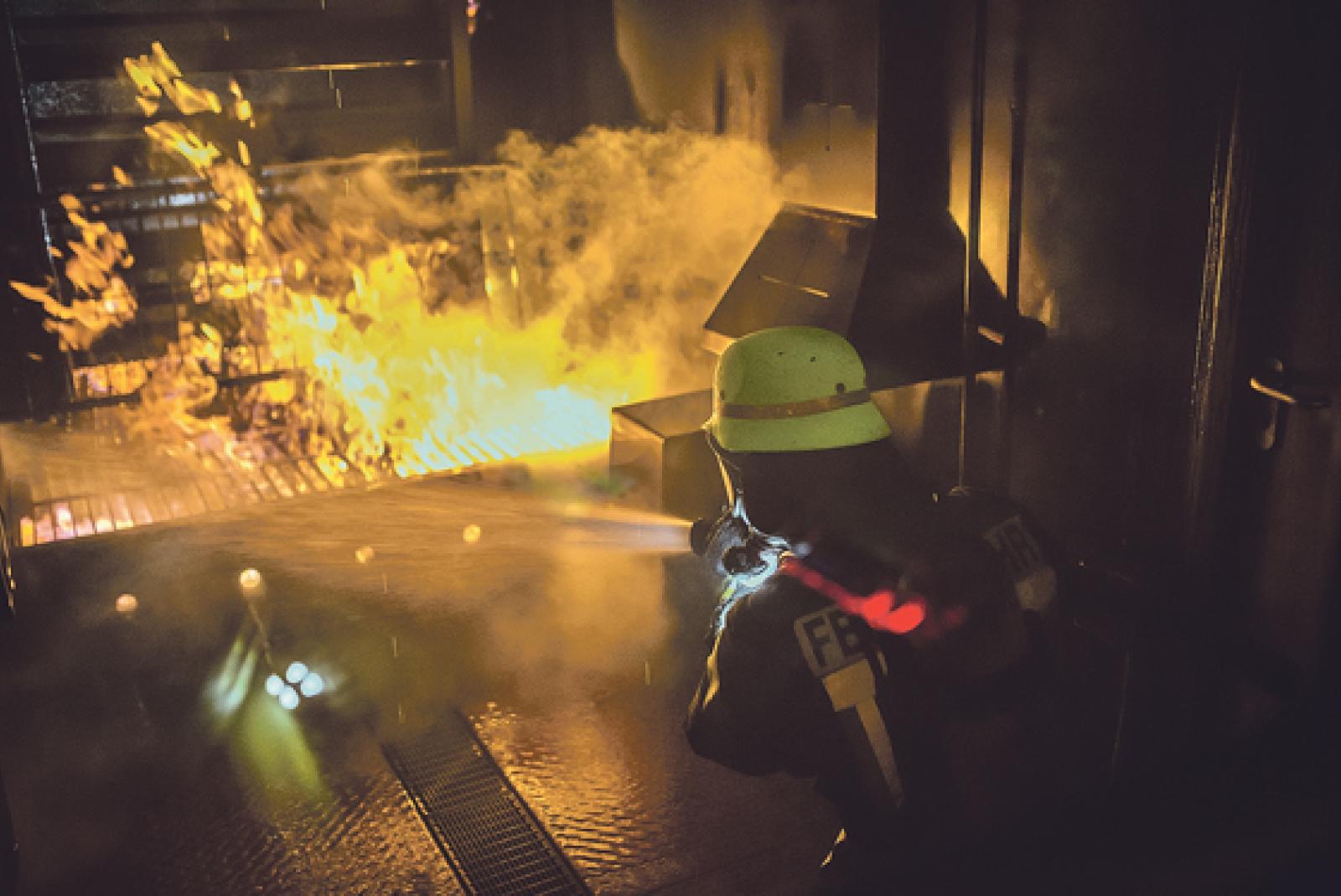 240 Feuerwehrleute üben im Brandsimulator - Oft mehr Löschwasser als nötig