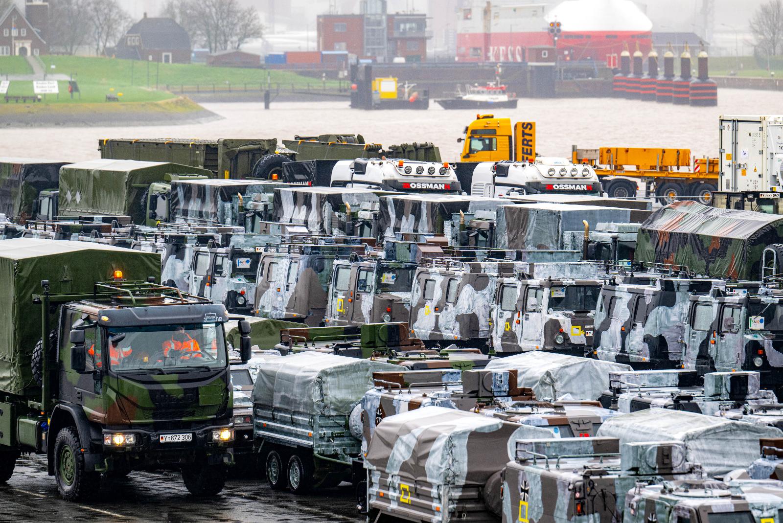 100 Fahrzeuge und Ausrüstung in Emden verladen