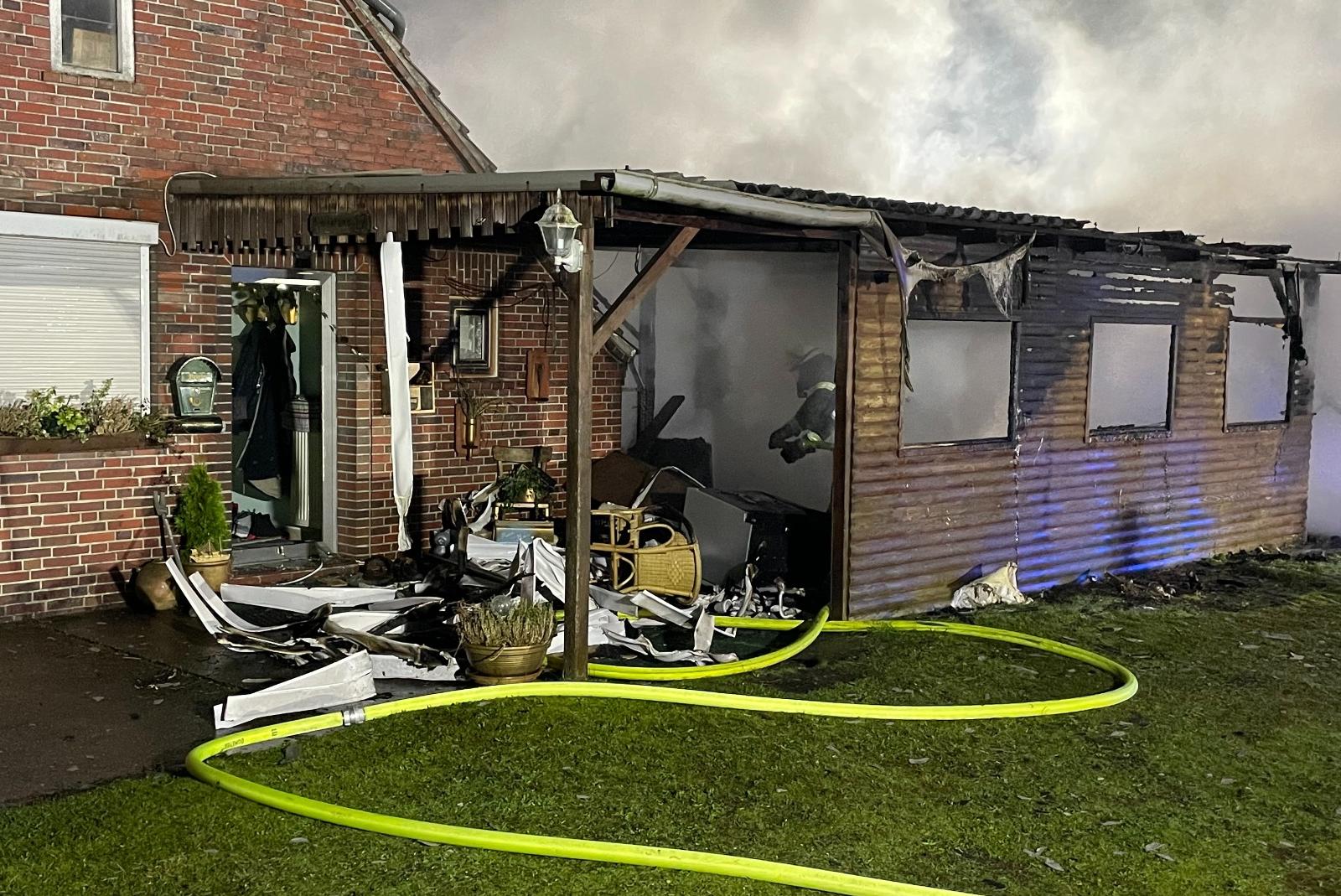 In der Nacht zum Samstag wurde die Feuerwehr zu einem Einsatz am Mühlenkamp gerufen, wo ein Feuer den Anbau eines Hauses erfasst hatte. Der Brand wurde von einem Ersthelfer und einem vorbeifahrenden Rettungswagen entdeckt, die sofort reagierten und sich Zugang zum Gebäude verschafften. "Dank ihres beherzten Handelns konnten eine schlafende Bewohnerin sowie ein Hund in letzter Minute gerettet werden", teilt die Kreisfeuerwehr mit.