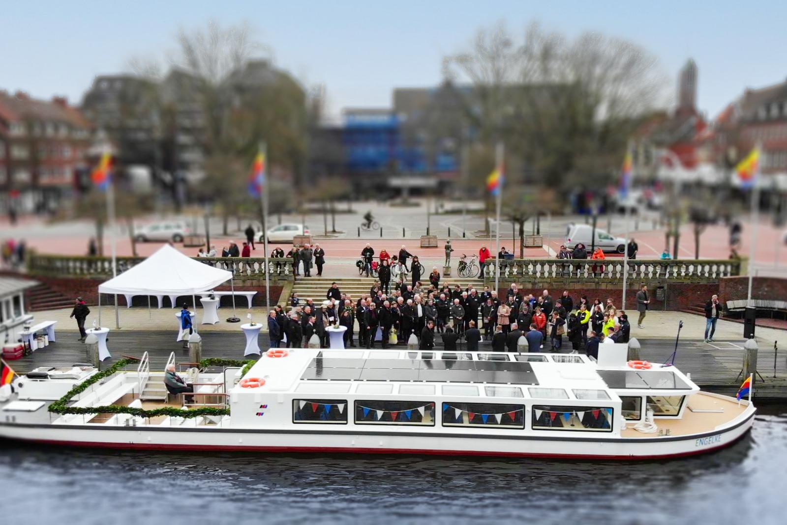Am heutigen Freitag wurde das neue vollelektrische Hafenboot für den Einsatz im Emder Hafen auf den Namen »Engelke« getauft. Taufpatin war Martje Merten, Geschäftsführerin für Wirtschaftsförderung und Stadtmarketing ...