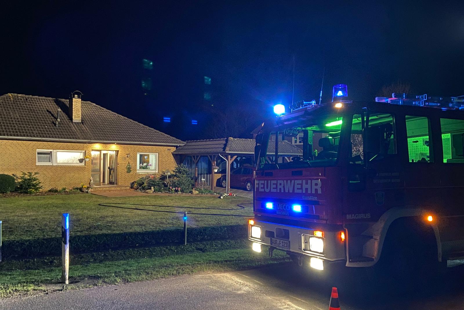 In die Straße Zum Schirumer Leegmoor musste die Feuerwehr Haxtum am Dienstagabend ausrücken. Dort hatten die Eigentümer eines Hauses während des Betriebs ihres Kamins bemerkt, dass der Rauch nicht mehr durch den Schornstein abzog, sondern den Weg zurück in die Räume des Hauses fand. Alle Rauchmelder im Haus lösten aus, daraufhin wurde die Feuerwehr alarmiert.