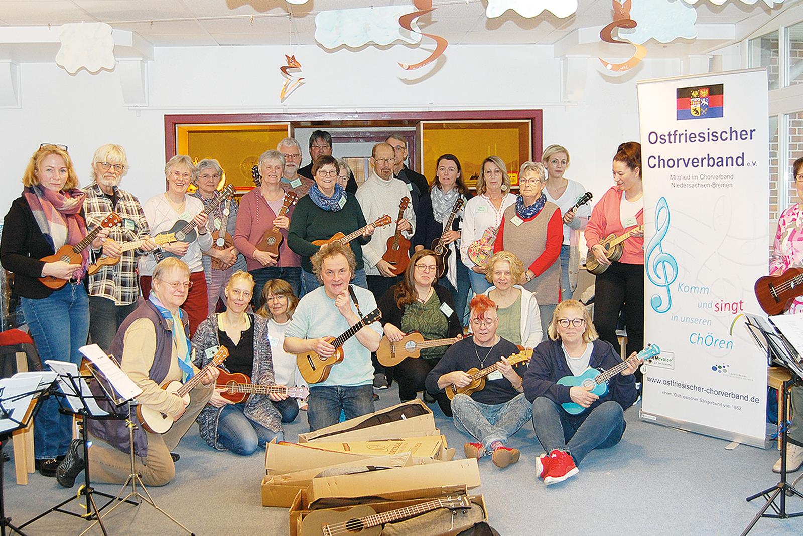 30 Menschen aus ganz Ostfriesland folgten einer Einladung von Anita Arians, Jugendreferentin im Ostfriesischen Chorverband, und nahmen in Friedeburg (Kreis Wittmund) an einem Ukulele-Workshop teil. Unter der Leitung des Kinderliedermachers Nicolas Jehn von der Musikwerkstatt Worpswede lernten die Teilnehmenden erste Akkorde ...