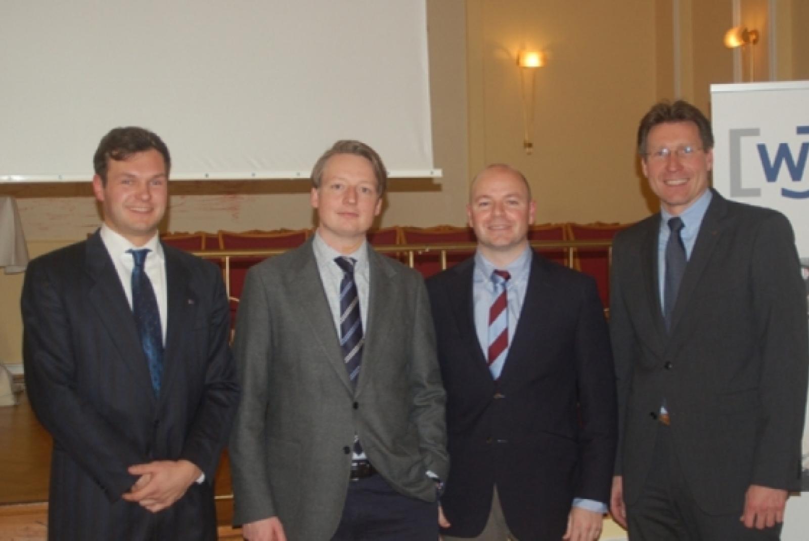 Der neue Vorstand (von links): Alexander Malchus (Geschäftsführer), Christian Brahms (stv. Vorsitzender), Oliver Löseke (Vorsitzender) und Frank Böse (turnusmäßig ausscheidender Vorsitzender 2011). Es fehlt Jan Neumann (Schatzmeister). ©