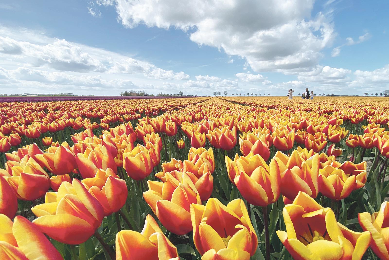 Bunter Blütenzauber, so weit das Auge reicht. Auf dem Reiderwolderpolder, unweit des niederländischen Nachbarortes Woldendorp bei Termunten, bietet sich derzeit dieser farbenfrohe Anblick. Dort stehen, wie überall im Land, die Tulpen in voller Blü...