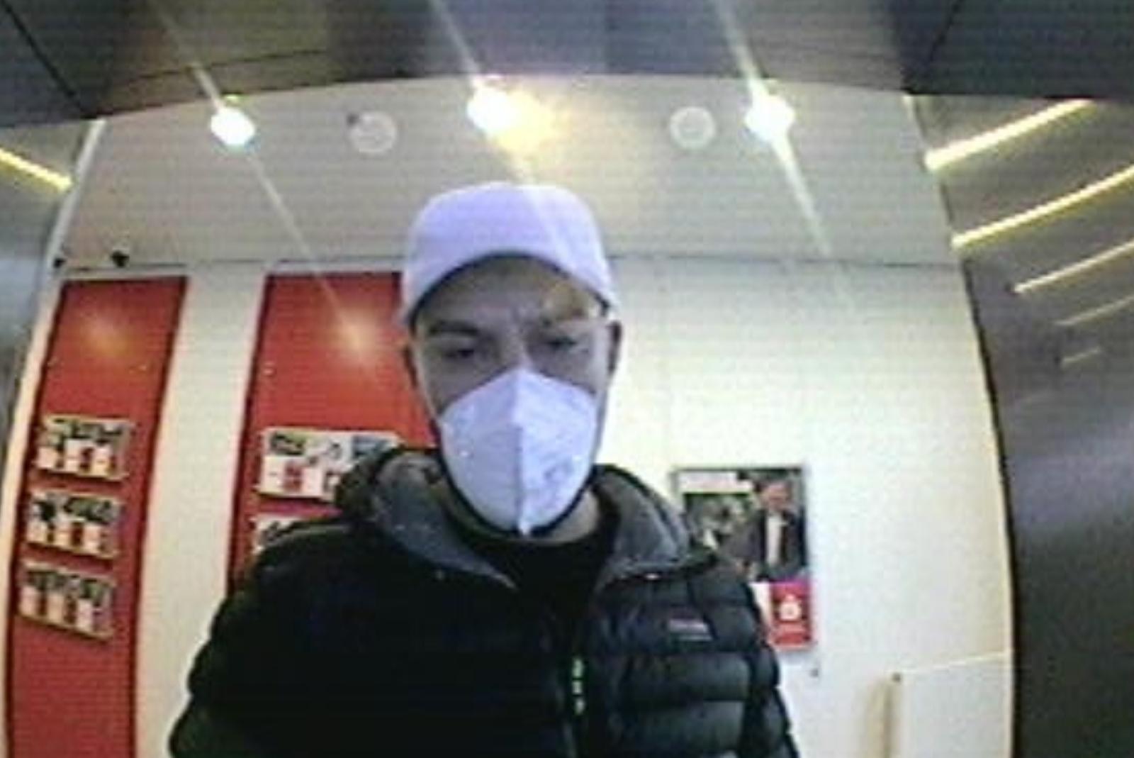 Der Täter trug zur Tatzeit eine weiße Cap, eine weiße FFP-Maske und eine schwarze Steppjacke sowie ein dunkles Shirt.