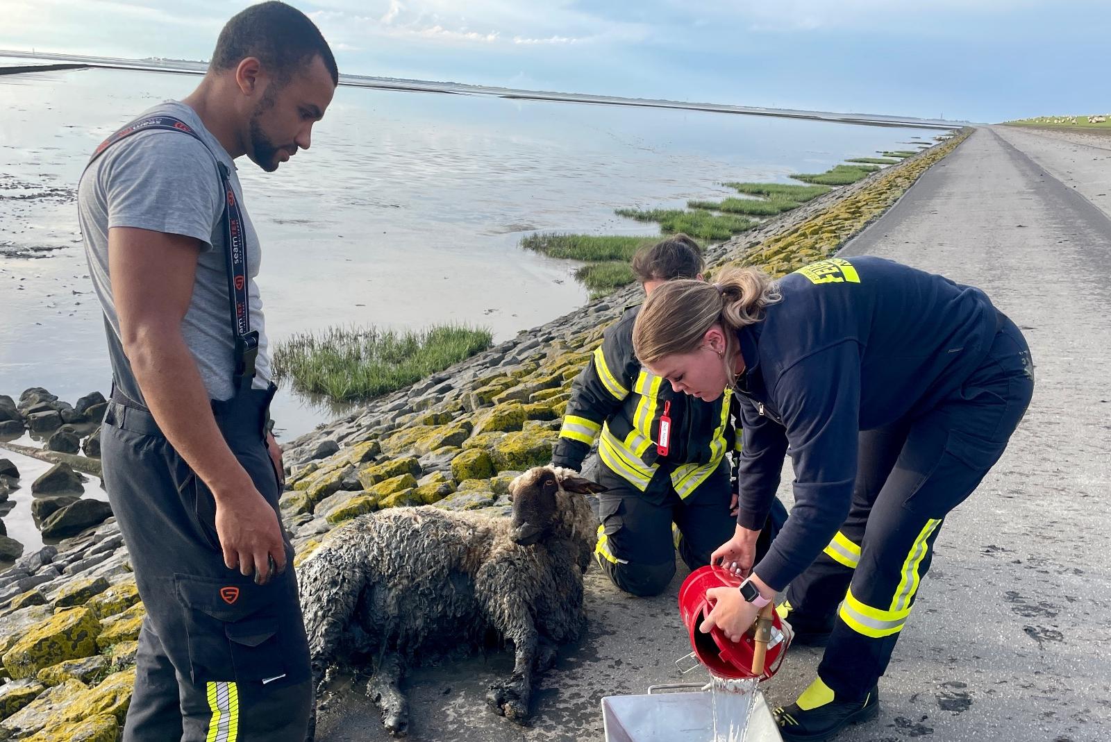 Ein Schaf hat die Freiwillige Feuerwehr Norden am Sonntagabend aus dem Watt vor Norddeich gerettet. Das Tier hatte sich laut einer Mitteilung der Feuerwehr von seiner Herde auf dem Deich getrennt und war in das matschige Watt gelaufen. Nach wenigen Metern versank es bis zum Bauch und stecke fest. Gäste eines nahegelegenen Mutter-Kind-Kurheims hatten das hilflose Schaf gegen 19.30 Uhr entdeckt und die Feuerwehr gerufen.