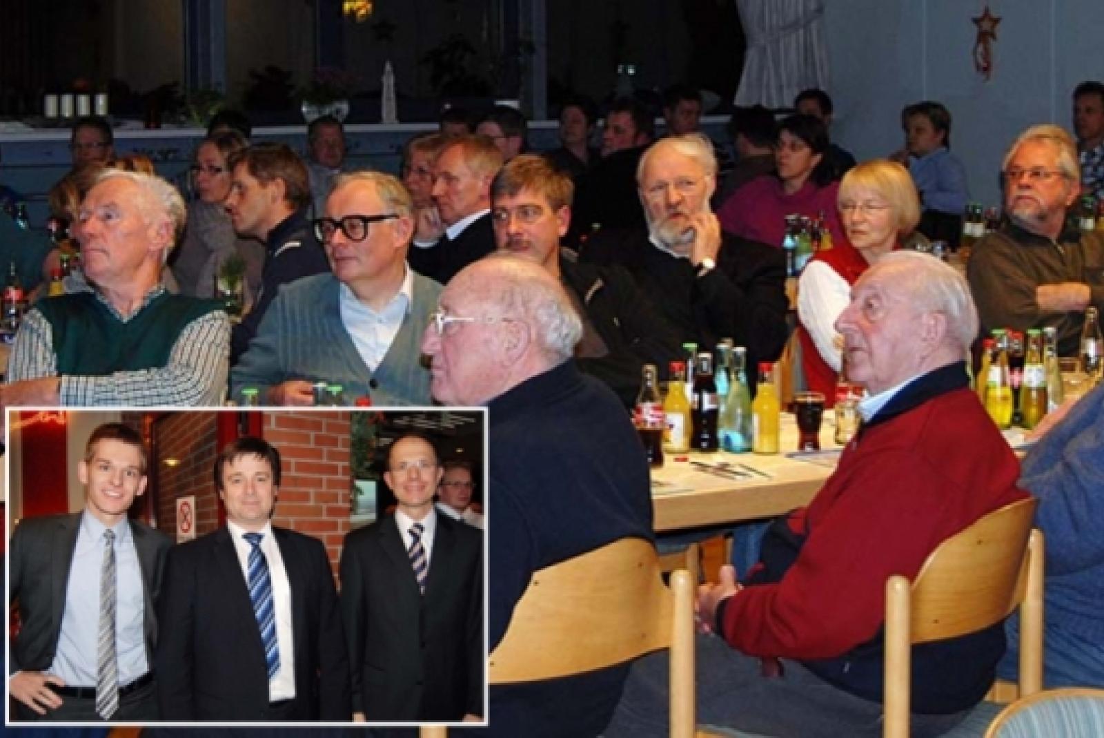 Zum fünften Mal in Folge hatten WINGAS und EWE jetzt zu einem Dezember-Infoabend in das Jemgumer DGH eingeladen. Rund 100 Zuhörer verfolgten die ausführlichen Sachvorträge von André Fisse, Ralf Riekenberg (beide EWE) und Arkardius J. Binia (WINGAS), auf dem kleinen Foto von links. © Fotos: Hoegen