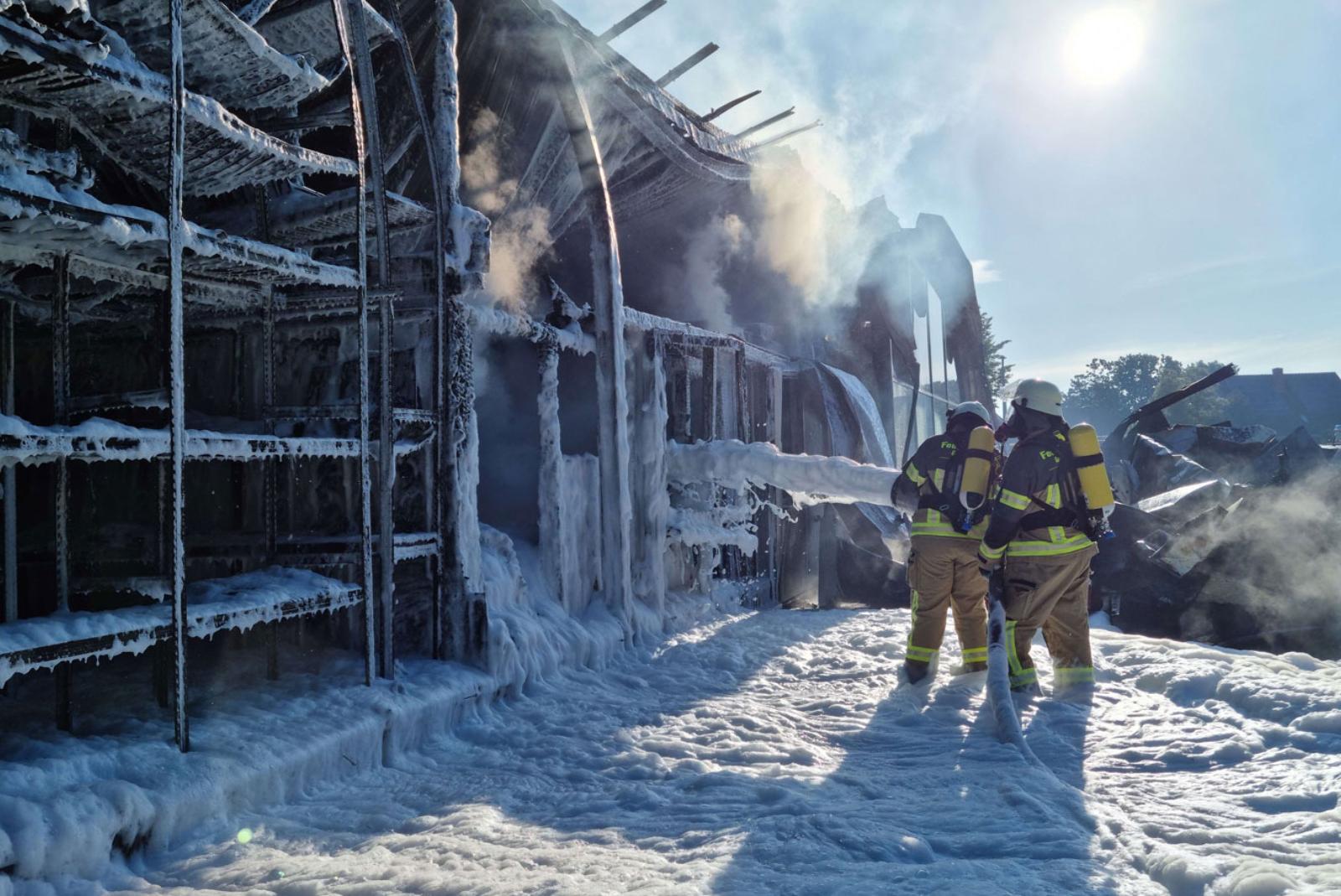 Am Dienstag waren die Brandermittler der Polizeiinspektion Aurich/Wittmund mit mehreren Sachverständigen, die seitens der Staatsanwaltschaft Aurich und der Versicherung beauftragt wurden, vor Ort. Für diverse Aufräumarbeiten und die Teildemontage der Halle waren zudem Unterstützungskräfte der technischen Einsatzgruppe der Polizei aus Oldenburg im Einsatz. Die Untersuchungen vor Ort konnten abgeschlossen werden, der Brandort ist wieder freigegeben.