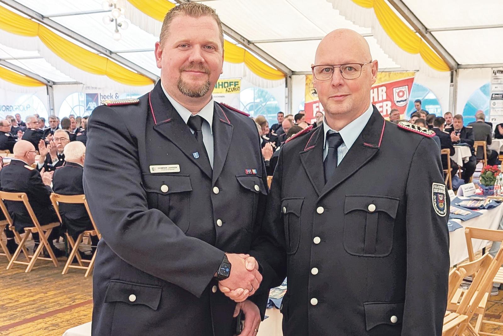 Während der Delegiertentagung anlässlich des Verbandfestes der Kreisfeuerwehr in Flachsmeer wurden jetzt auch Rheiderländer Feuerwehrleute geehrt, befördert oder bekamen per Ernennung eine neue Aufgabe.
