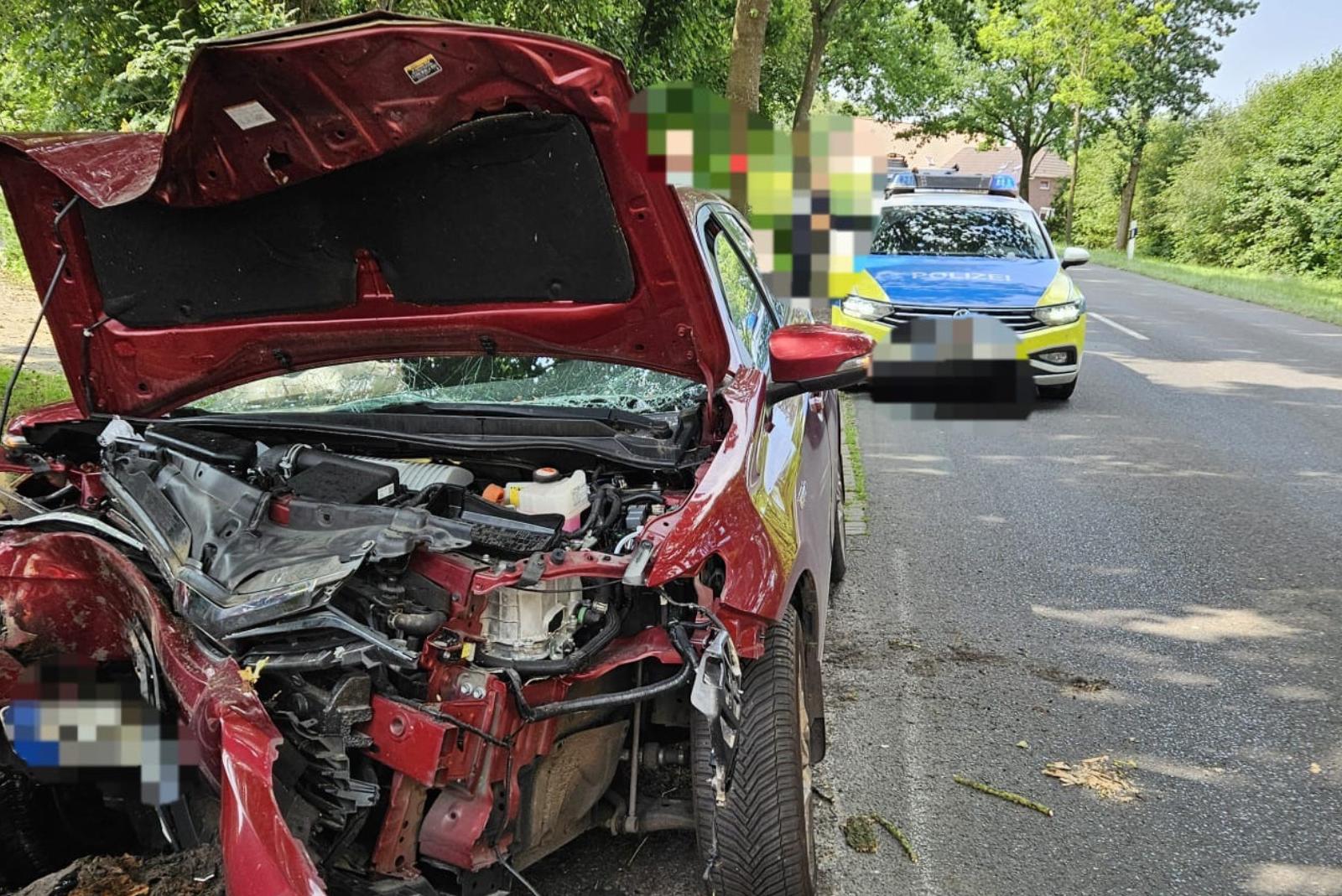 Am Donnerstag um 10.24 Uhr ist aus noch ungeklärter Ursache ein Auto in Münkeboe gegen einen an der Straße stehenden Baum in der Upender Straße gefahren. Die Freiwillige Feuerwehr Münkeboe-Moorhusen war im Einsatz. Der Fahrer, ein 75-Jähriger aus Südbrookmerland, wurde bei Ankunft der Feuerwehr bereits vom Rettungsdienst versorgt. Er hatte sich leicht verletzt. Da es sich bei dem Unfallwagen um ein Hybrid Fahrzeug handelte, wurde der Not-Trennschalter gezogen und alle Batterien abgeklemmt, sodass das Abschleppunternehmen das Fahrzeug abtransportieren konnte. Auslaufende Betriebsstoffe wurden gebunden. Außer der Feuerwehr mit einem Fahrzeug und 9 Einsatzkräften war auch der Rettungsdienst des LK Aurich, ein Abschleppunternehmen und die Polizei vor Ort. Nach rund eineinhalb Stunden konnte der Einsatz beendet werden.