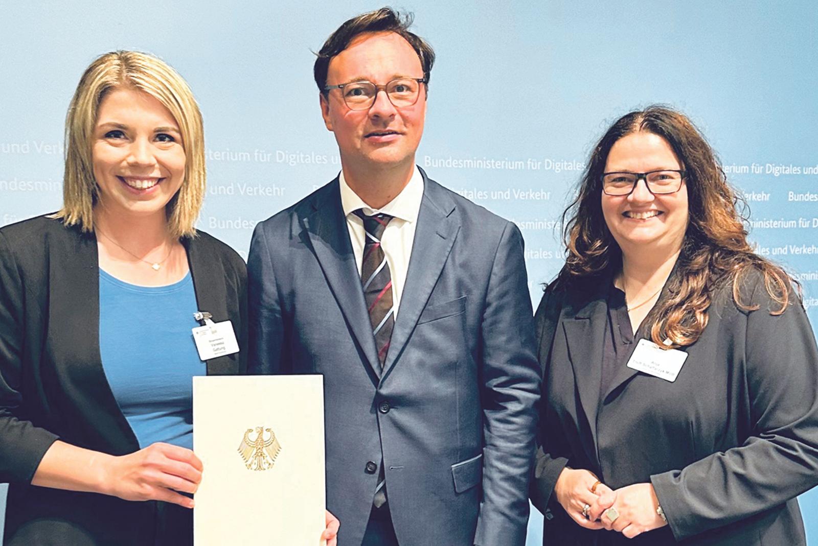 Die Stadt Papenburg erhält Fördermittel für neue Fahrradstation am Bahnhof Papenburg aus dem Förderprogramm »Fahrradparkhäuser an Bahnhöfen«. Bürgermeisterin Vanessa Gattung nahm den Bescheid über 331.430,48 Euro jetzt im Bundesministerium für Digitales und Verkehr ...