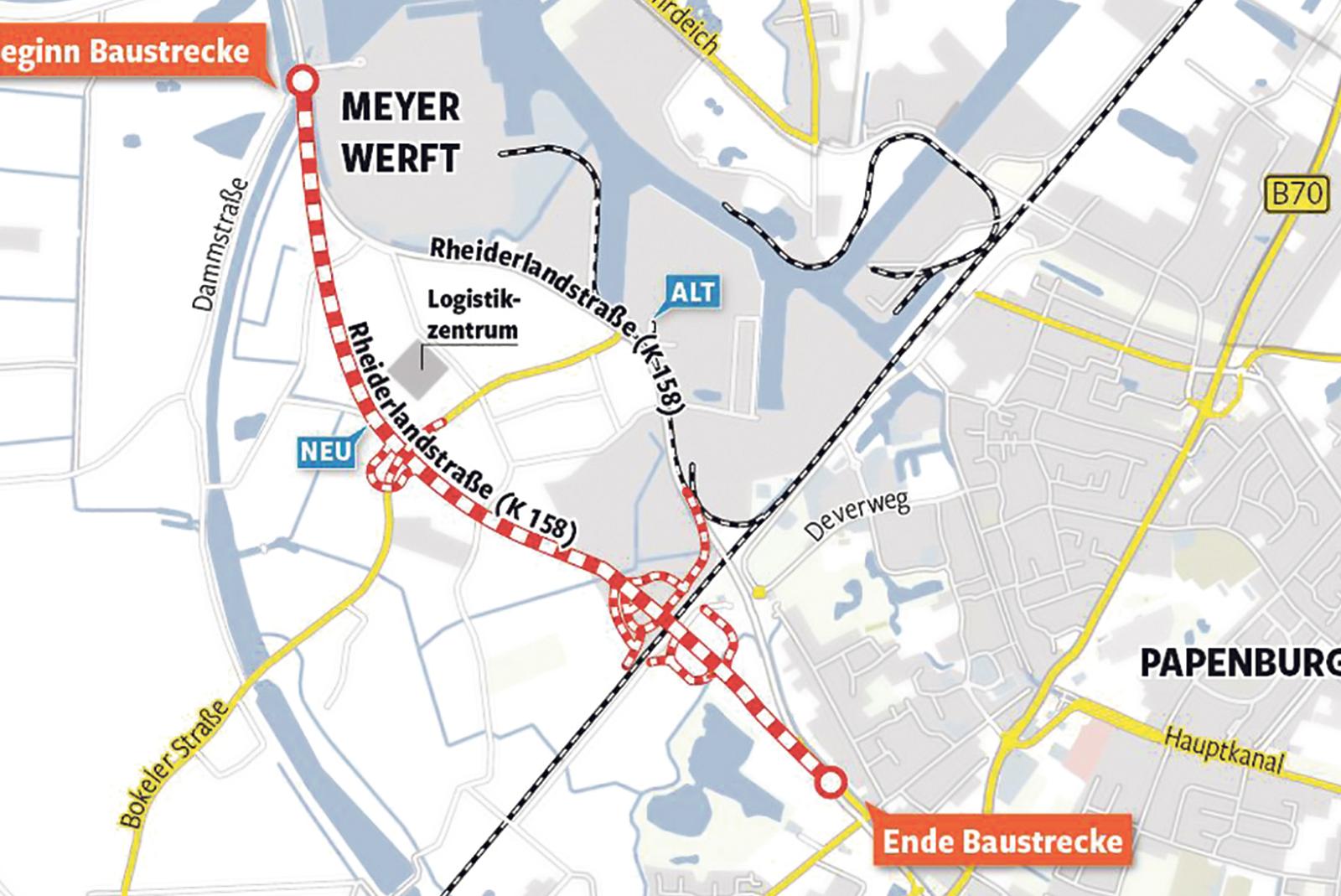 Sie ist eine der Hauptverkehrsadern in Papenburg. Rund 12.500 Kraftfahrzeuge rollen im Schnitt täglich über die Rheiderlandstraße (K158) in Papenburg. Die Zahl stammt aus dem Jahr 2020, wird Prognosen zufolge aber in einigen Jahren deutlich steigen. Auch deshalb wird ...