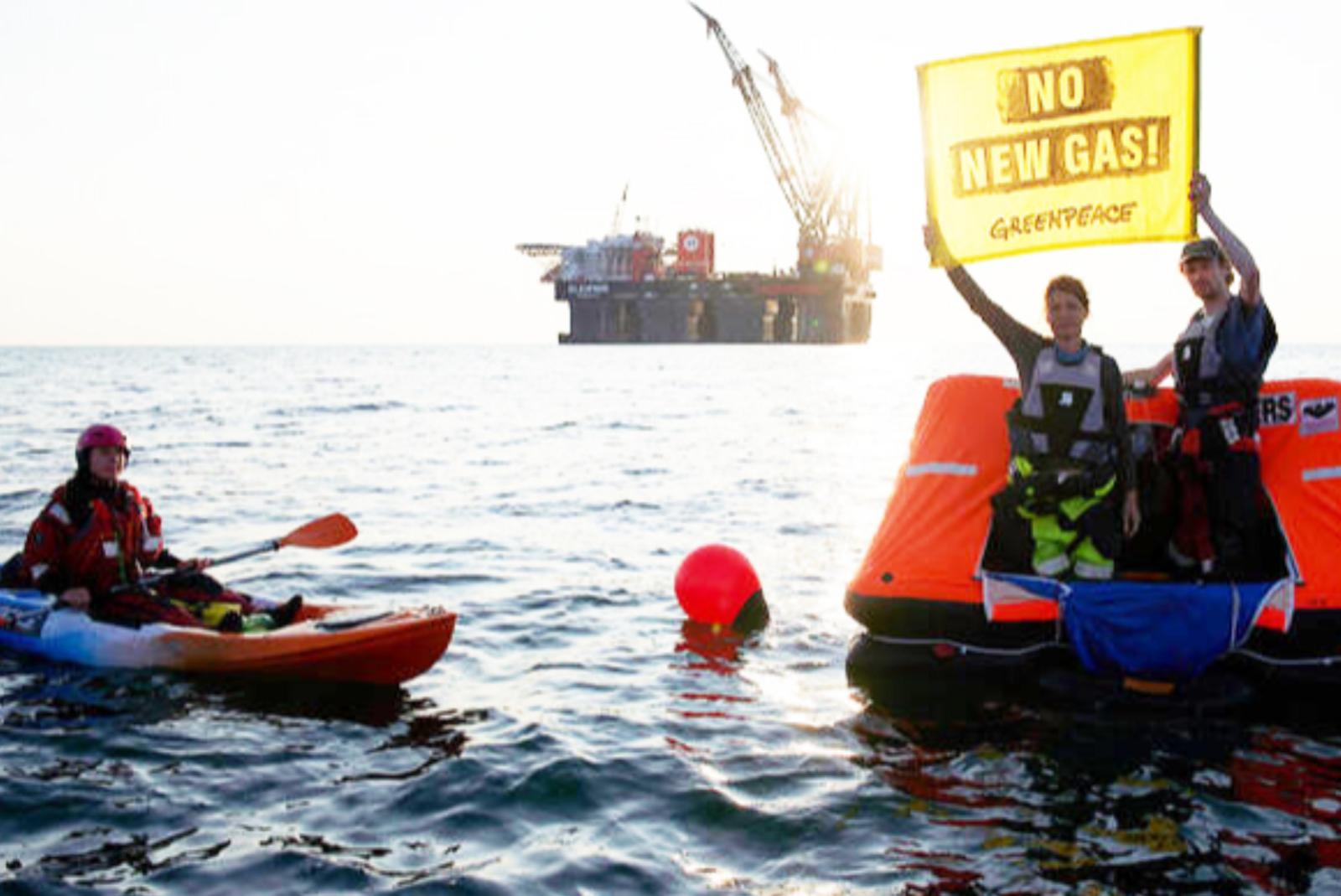 Aktivisten der Umweltschutzorganisation Greenpeace setzen ihre am Dienstag begonnene Protestaktion in der Nordsee gegen die geplante Erdgasförderung vor der niederländischen und deutschen Küste fort.