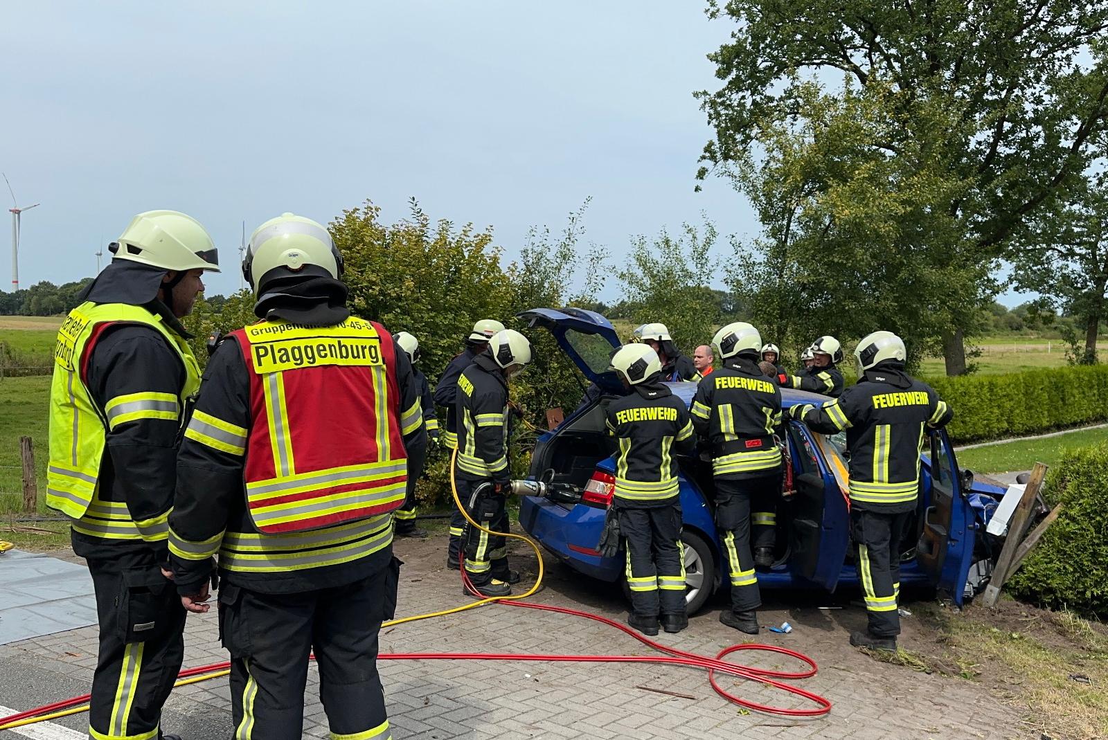 Mit hydraulischem Rettungsgerät musste die Feuerwehr gestern Nachmittag einen schwer verletzten 27-jährigen Autofahrer aus seinem Wagen befreien. Der Mann war gegen 13.30 Uhr mit seinem Skoda von der Dietrichsfelder Straße in Aurich abgekommen und in der Böschung eines Grundstücks gelandet. Die Feuerwehrleute schnitten das Dach des Autos auf, um den Schwerverletzten möglichst schonend retten zu können. Der Mann wurde dann in ein Krankenhaus eingeliefert. Gegen 13.35 Uhr waren die Feuerwehren Plaggenburg und Middels, der bei der Feuerwehr Sandhorst stationierte Rüstwagen sowie Rettungsdienst und Polizei alarmiert worden.