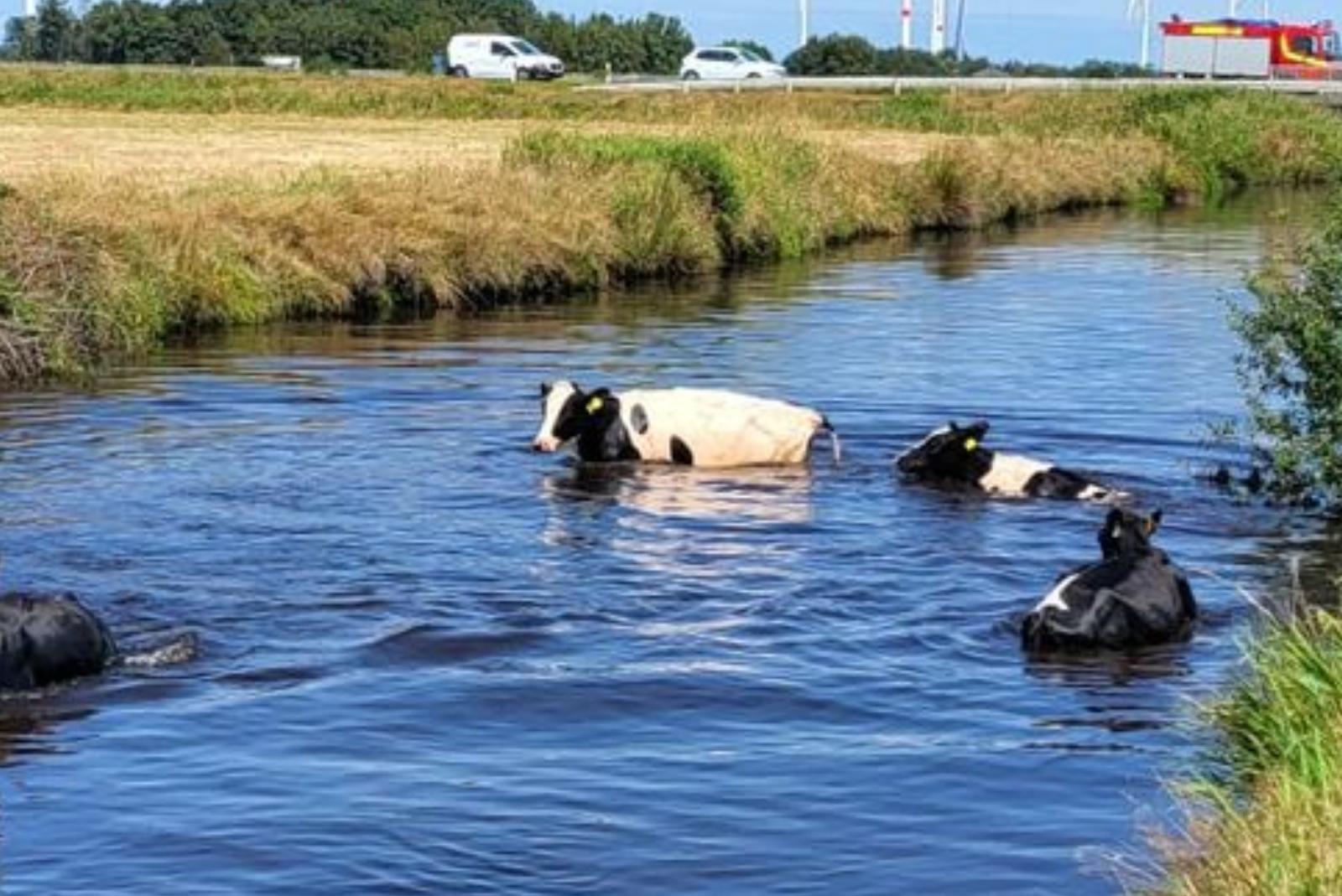 Die Feuerwehren aus Simonswolde und Oldersum wurden bereits am Freitag zu einer Tierrettung in Simonswolde alarmiert. Ein Autofahrer hatte zuvor eine Kuh im Kanal entdeckt. Als die Einsatzkräfte eintrafen, stellte sich heraus, dass sich vier Tiere im Wasser befanden.