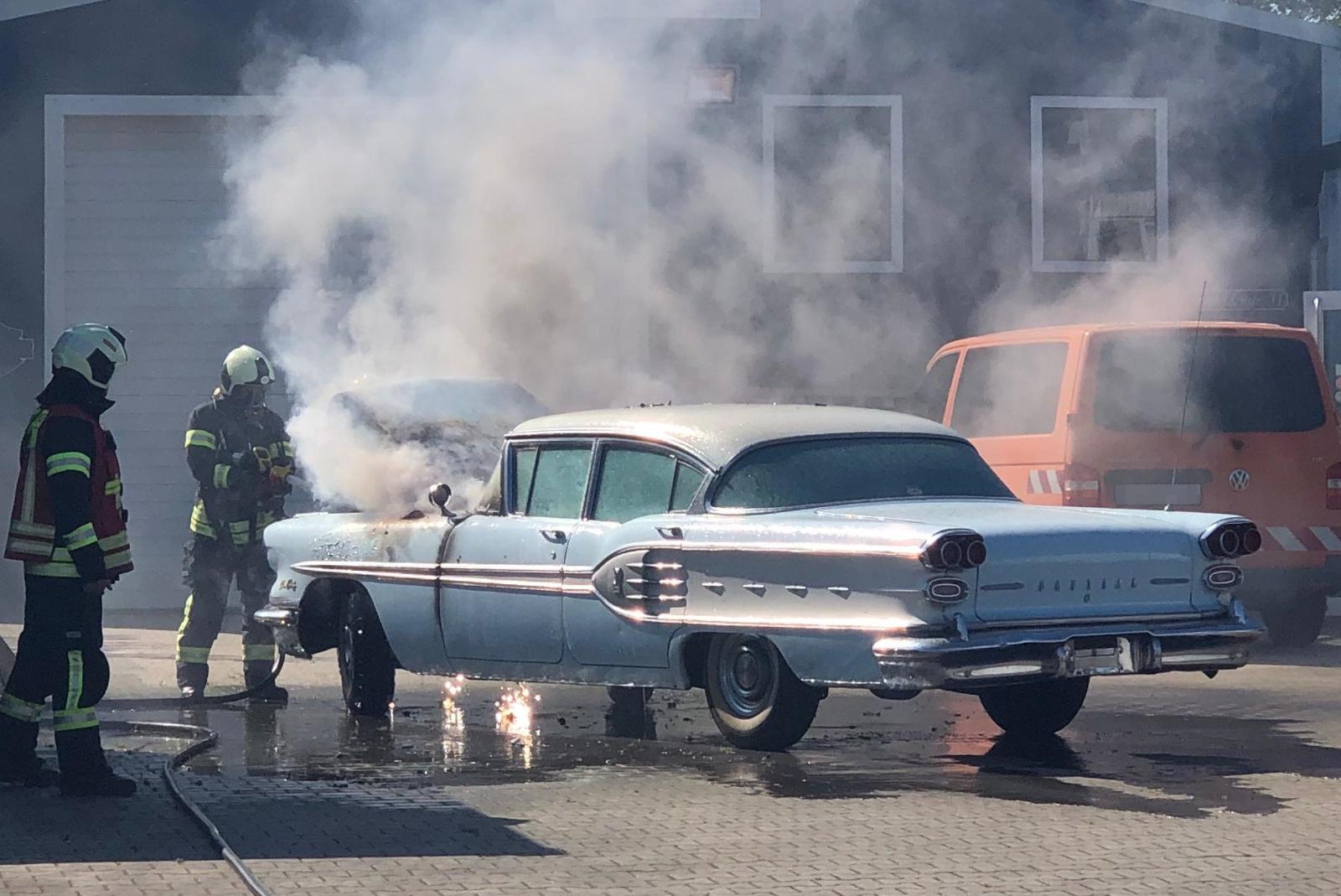Im Motorraum eines Oldtimers ist am Mittwochnachmittag ein Brand ausgebrochen. Das Fahrzeug war zu diesem Zeitpunkt in einer Werkstatthalle am Kornkamp im Industriegebiet in Schirum (Kreis Aurich) abgestellt. Der Eigentümer bemerkte laut Feuerwehr die Rauchentwicklung und beförderte das ...