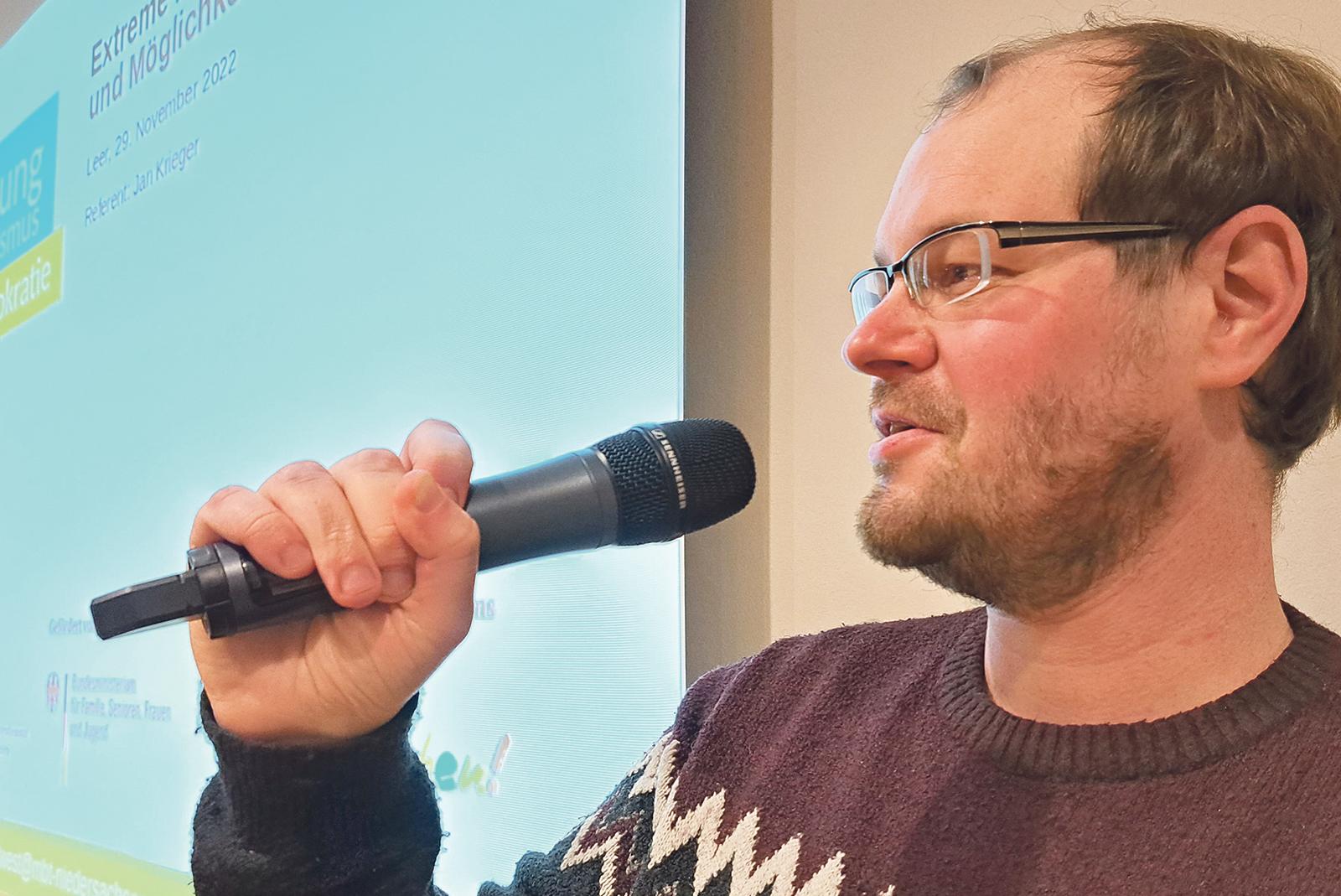 Wenn morgen die kulturellen Themenwochen für Demokratie und Vielfalt in Leer beginnen, ist Jan Krieger wieder mit einem Vortrag daran beteiligt. Ob der Projektleiter des Regionalbüros Nord/West der »Mobilen Beratung Niedersachsen gegen Rechtsextremismus f&...