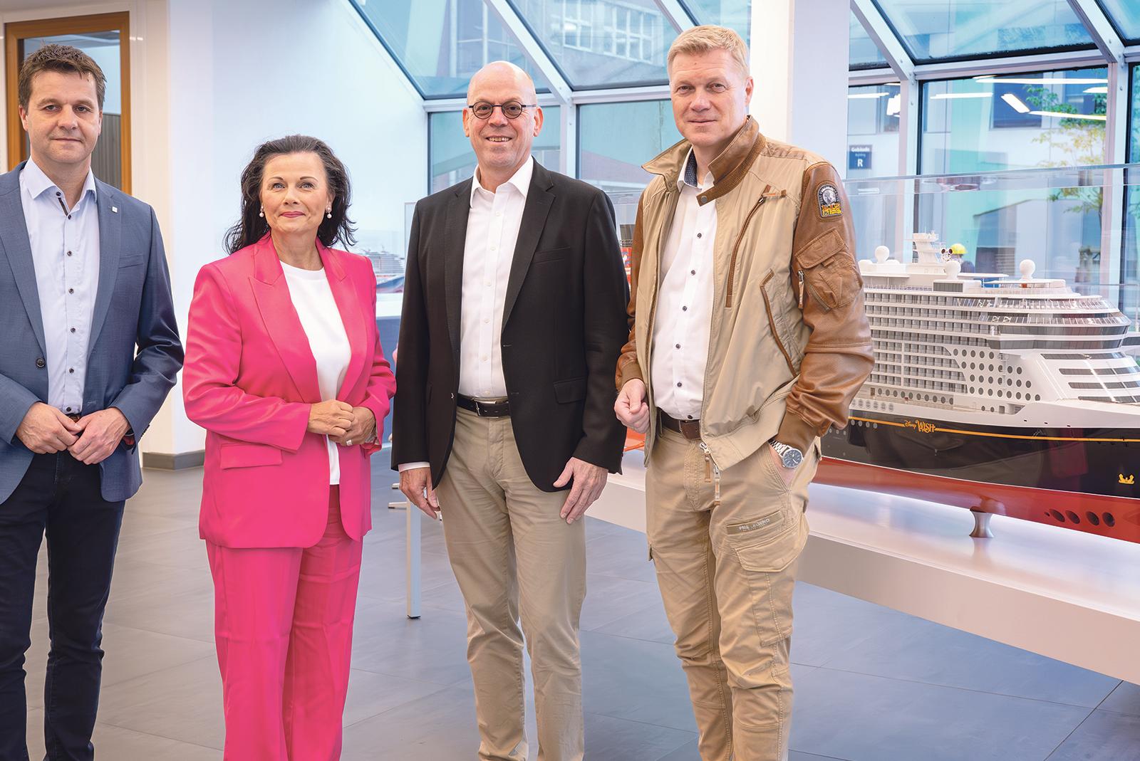 Informierten sich bei Meyer-Geschäftsführer Bernd Eikens (Zweiter von rechts) über die Lage der Werft (von links): die CDU-Abgeordneten Hartmut Moorkamp, Gitta Connemann und Ulf Thiele.  © Foto: privat