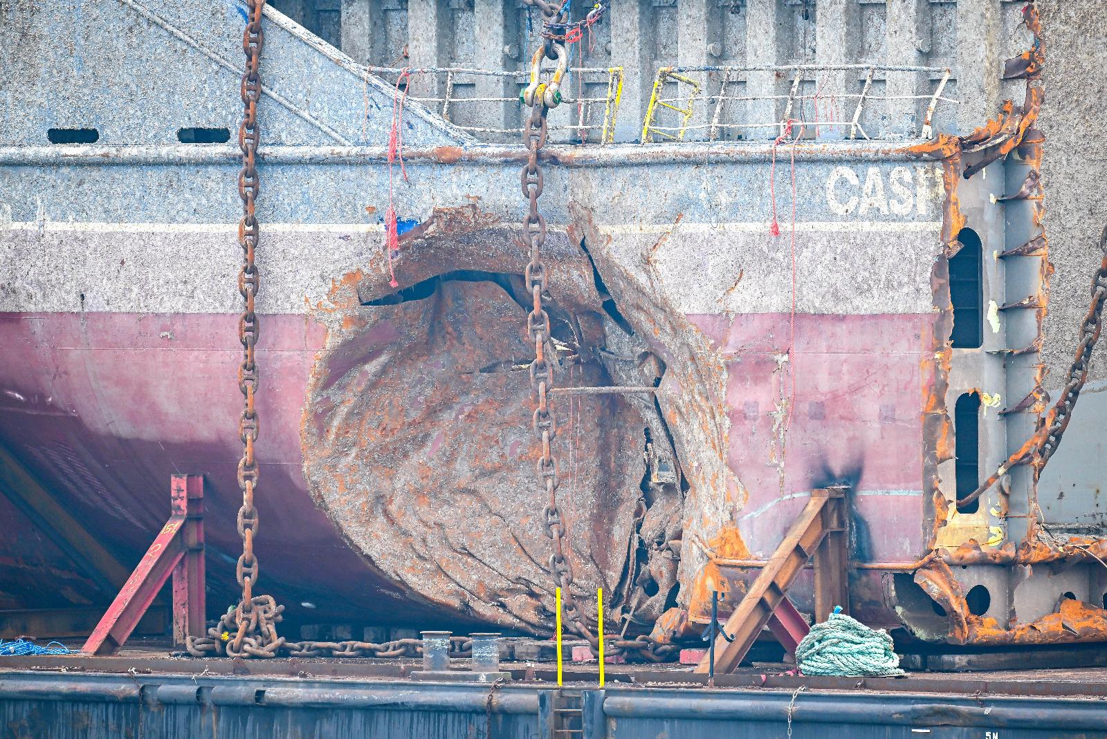 Bei der Bergung war zunächst das Heckteil des unter Wasser zweigeteilten Schiffes vom Meeresgrund gehoben worden. Die Havariestelle ist deutlich zu erkennen. Sie ist rund, hat einen Radius von geschätzt vier Metern und zeigt, wo das Küstenmotorschiff »Verity« gerammt wurde. Das Loch in der Bordwand ist sichtbar. »Was man beim Herumfahren um das Wrack auch sehr schön erkennen konnte, war, dass man auch von innen wieder nach draußen schauen konnte«, sagte die Ermittlerin der Bundesstelle für Seeunfalluntersuchung, Lea Beyling, die den Unglücksort von einem anderen Schiff aus besichtigte. Das Wasser konnte ihr zufolge schnell in den Laderaum eindringen und führte zum Sinken des Schiffes.