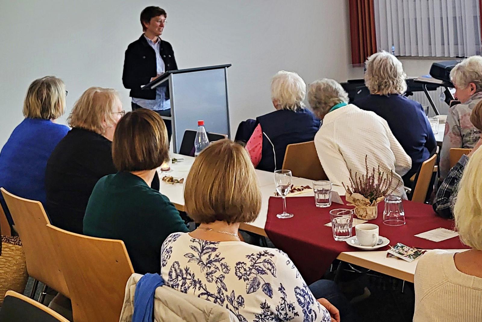 Irmtraud Baumann spricht bei »Auszeit«-Veranstaltung in Bunde