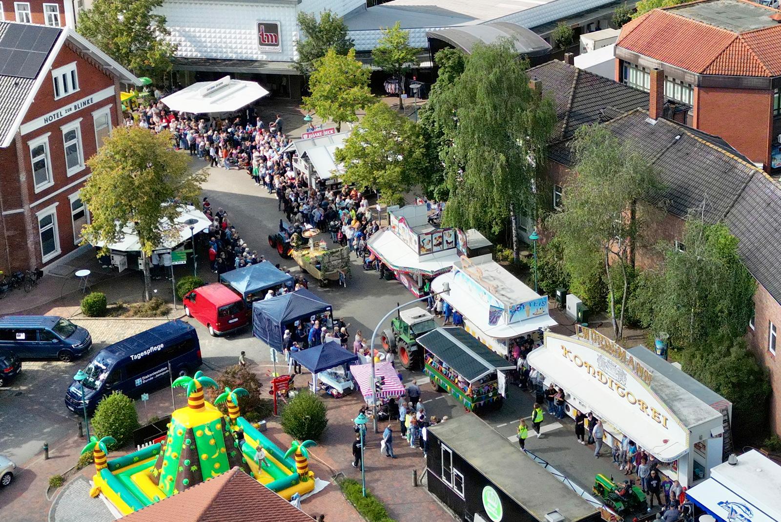 Der Umzug der Euro-Fete nimmt gerade seinen Weg durch das Bunder Ortszentrum. Hier ein Bild des Spektakels aus der Vogelperspektive. Über das zweitägige Straßenfest berichtet die RZ morgen ausführlich!