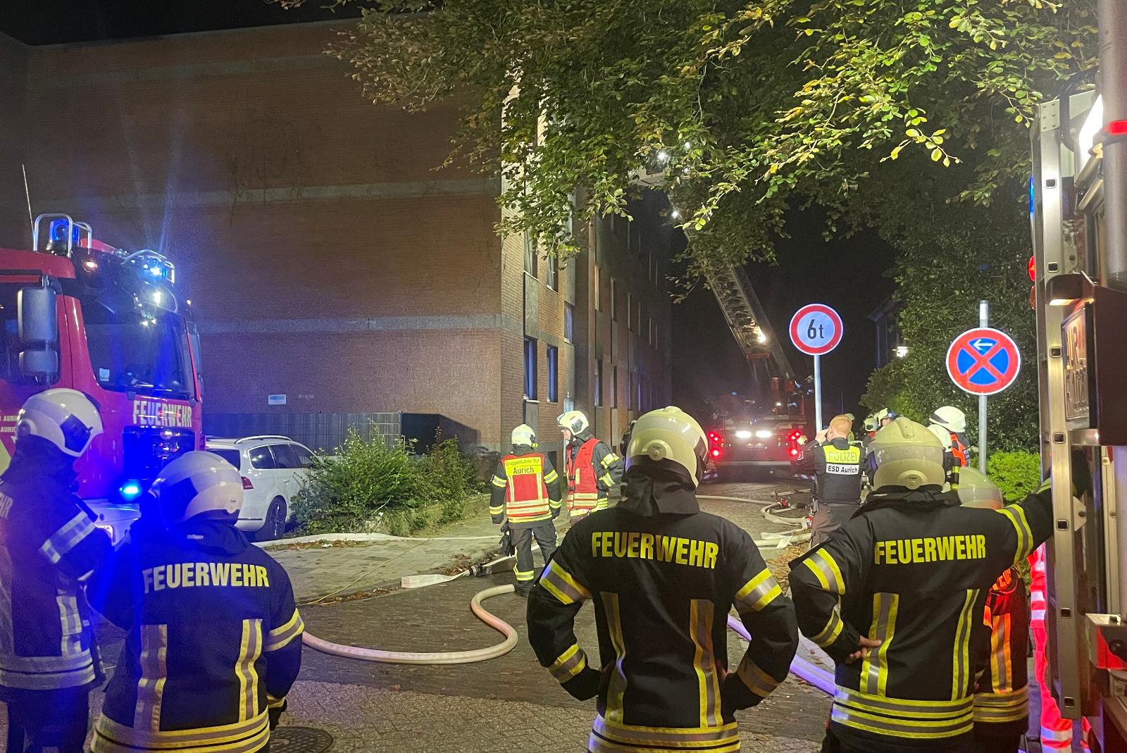 Eine Wohnung in der Zingelstraße in Aurich stand am Montagabend in Vollbrand. Beim Eintreffen der um 23.24 Uhr alarmierten Feuerwehr Aurich schlugen bereits Flammen aus einem Fenster im zweiten Obergeschoss.