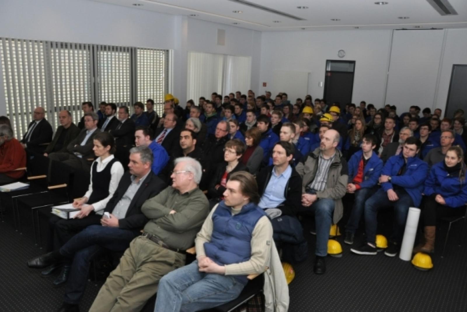 An einer Info-Veranstaltung des Landkreises Leer für Wirtschaftsvertreter nahmen gestern auch rund 100 Auszubildende der Meyer Werft teil. © Wolters