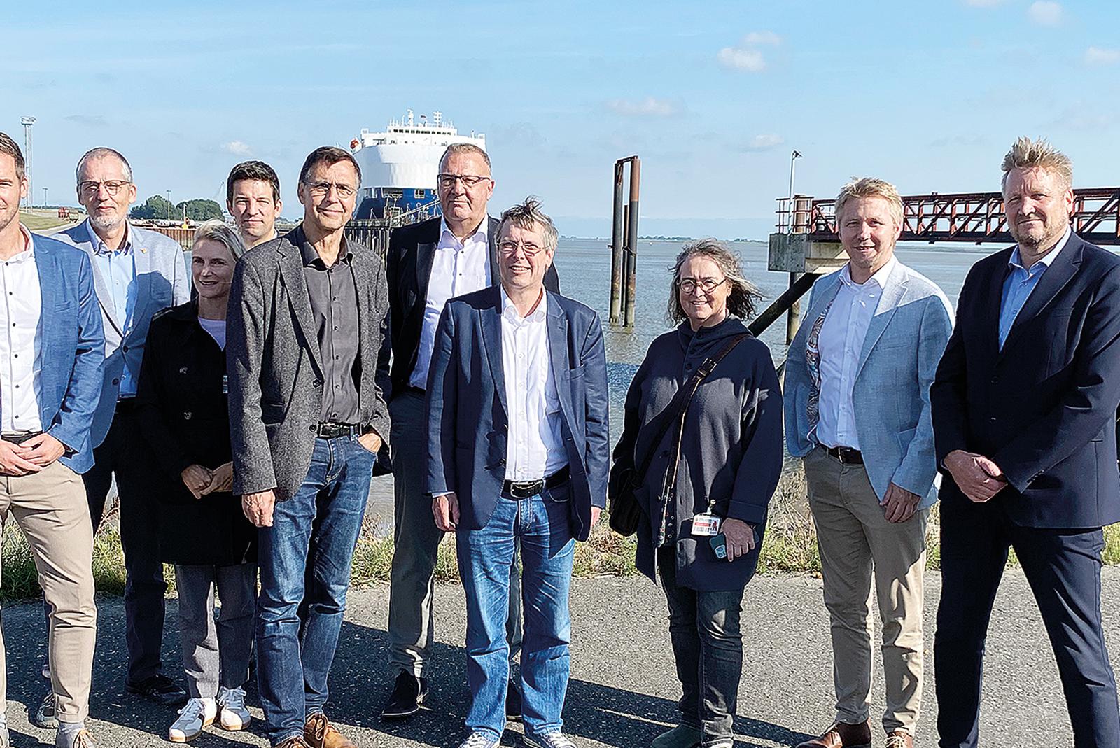 Vertreter der Niedersächsischen Ministerien für Wirtschaft, Verkehr, Bauen und Digitalisierung (MW) sowie für Umwelt, Energie und Klimaschutz (MU) haben sich jetzt im Emder Außenhafen ein Bild vom geplanten Großschiffsliegeplatz gemacht. Begleitet wurden sie von Reprä...