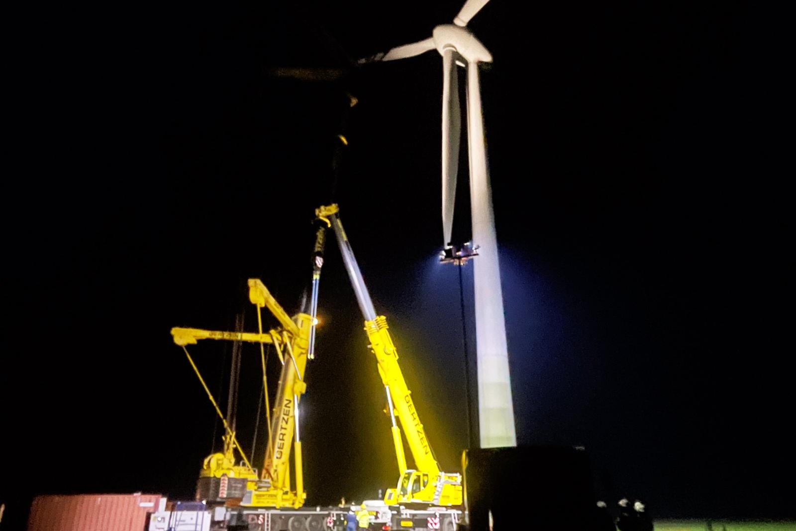 Einsatzkräfte bauten gestern Abend Lichtmast in Windpark auf
