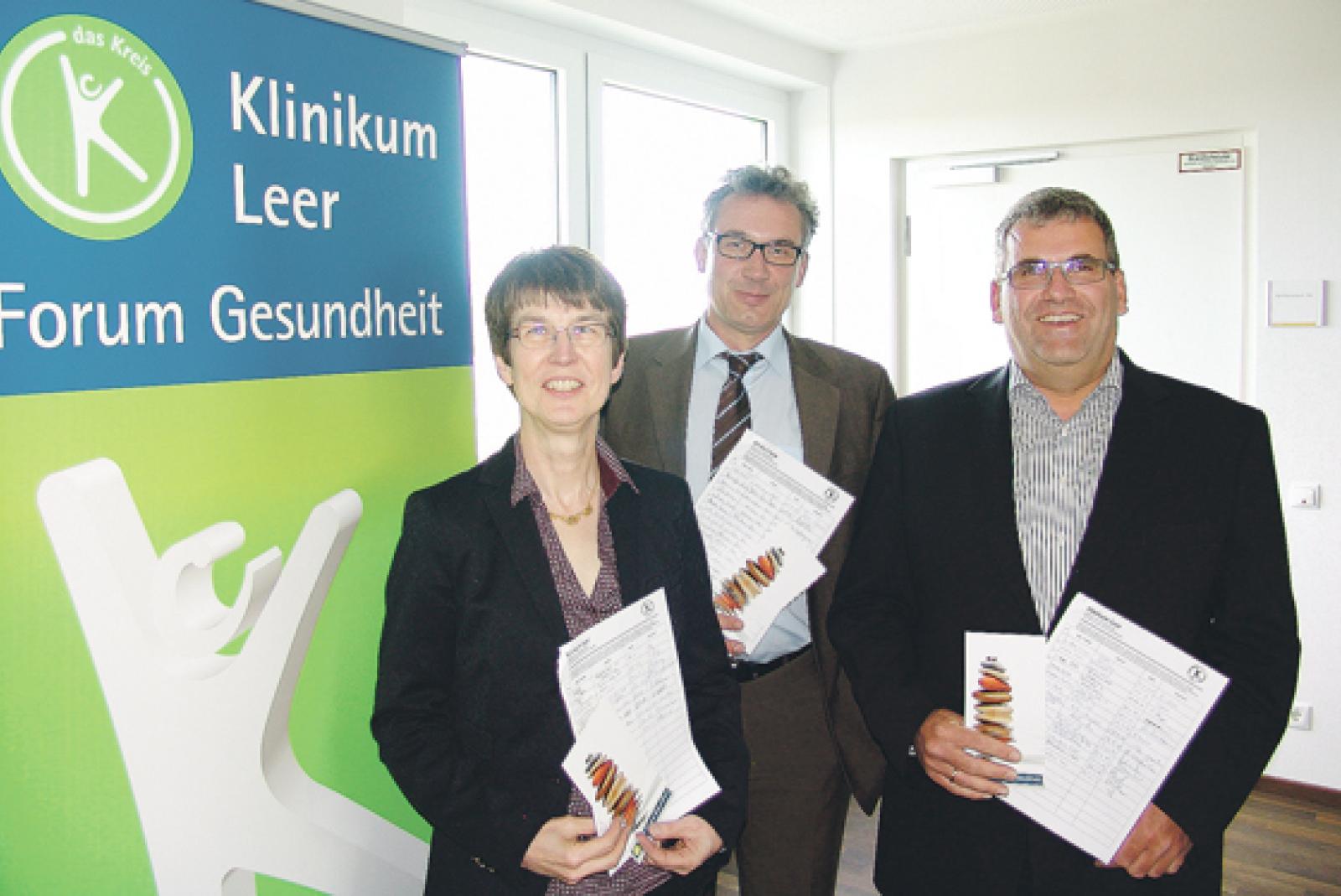 Die Palliativmediziner Prof. Dr. Sylvia Kotterba (Chefärztin der Klinik für Geriatrie), Dr. Markus Dornbach (Chefarzt der Klinik für Innere Medizin am Krankenhaus Rheiderland) und Dr. Jörn-Carsten Studt (Chefarzt der Klinik für Innere Medizin am Klinikum Leer, von links) informierten am Montagabend am Leeraner Klinikum über die verschiedenen Facetten der palliativmedizinischen Versorgung in Ostfriesland. © Foto: Boelmann