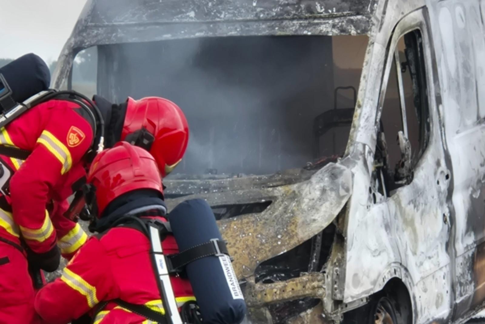 Auto steht auf der Autobahn 31 in Flammen - Transporter brennt in Bunderneuland