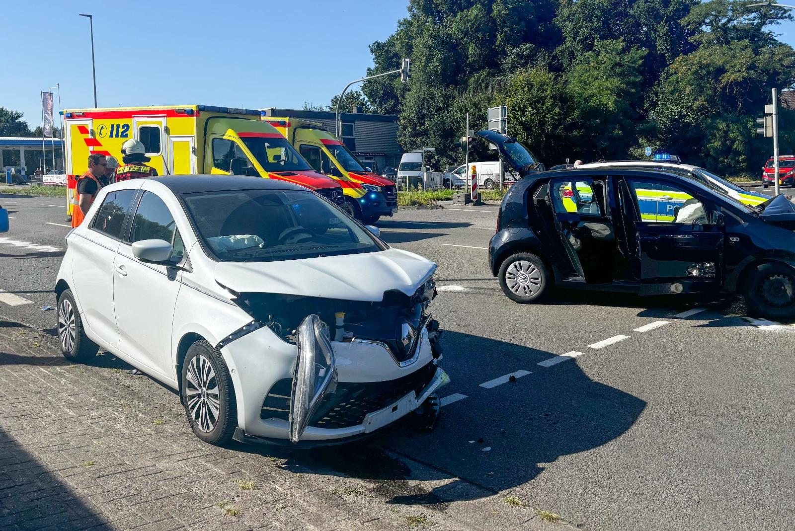 Der VW Up wurde durch den Zusammenstoß gegen den Mercedes Sprinter eines 47-jährigen Oldenburgers geschleudert, der sich auf der Abbiegespur der Auricher Landstraße in Richtung der Kanalstraße Süd befand. Sowohl die VW-Fahrerin als auch die Renault-Fahrerin kamen mit schweren Verletzungen ins Krankenhaus.