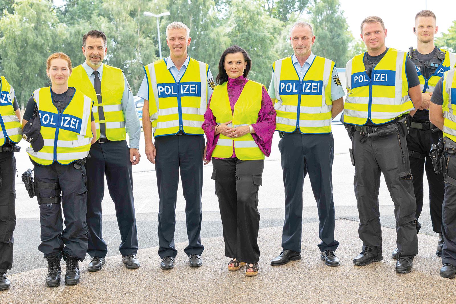 Die CDU-Bundestagsabgeordnete Gitta Connemann (Mitte) informierte sich am Grenzübergang Bunderneuland über die Arbeit der Bundespolizei. © Foto: privat