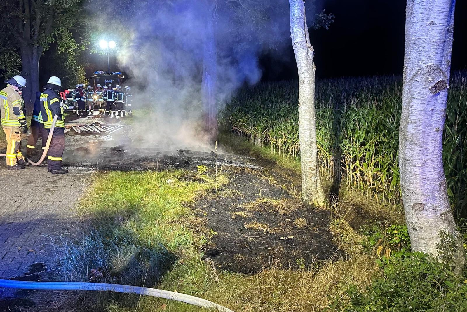In der Nacht zum Sonntag wurden die Feuerwehren Uplengen-Ost und Uplengen-Mitte um 0.51 Uhr zu einem Brand im Milbenweg in Kleinsander (Gemeinde Uplengen) alarmiert. Beim Eintreffen der ersten Einsatzkrafte stand eine Bushaltestelle bereits vollständig in Flammen, heißt es in einer Mitteilung. Das Feuer hatte sich offenbar schon länger unbemerkt entwickelt, sodass die Konstruktion der Haltestelle beim Eintreffen der Feuerwehr bereits eingestürzt war.