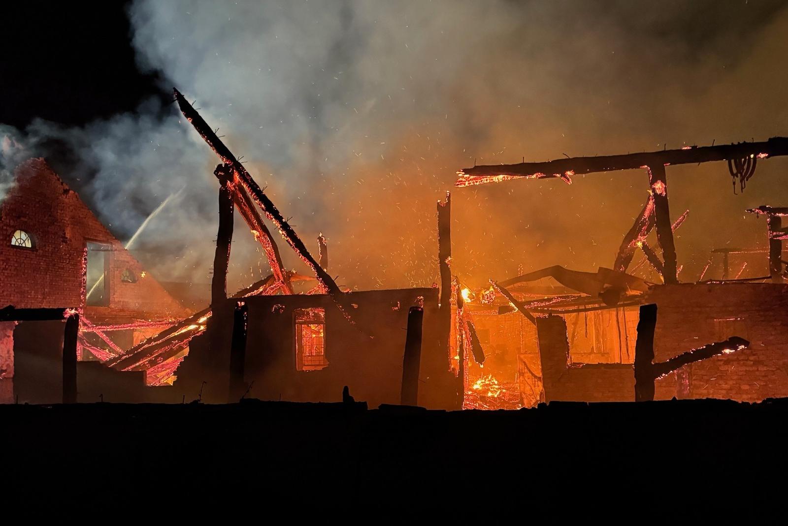Leerstehender Bauernhof lichterloh in Flammen