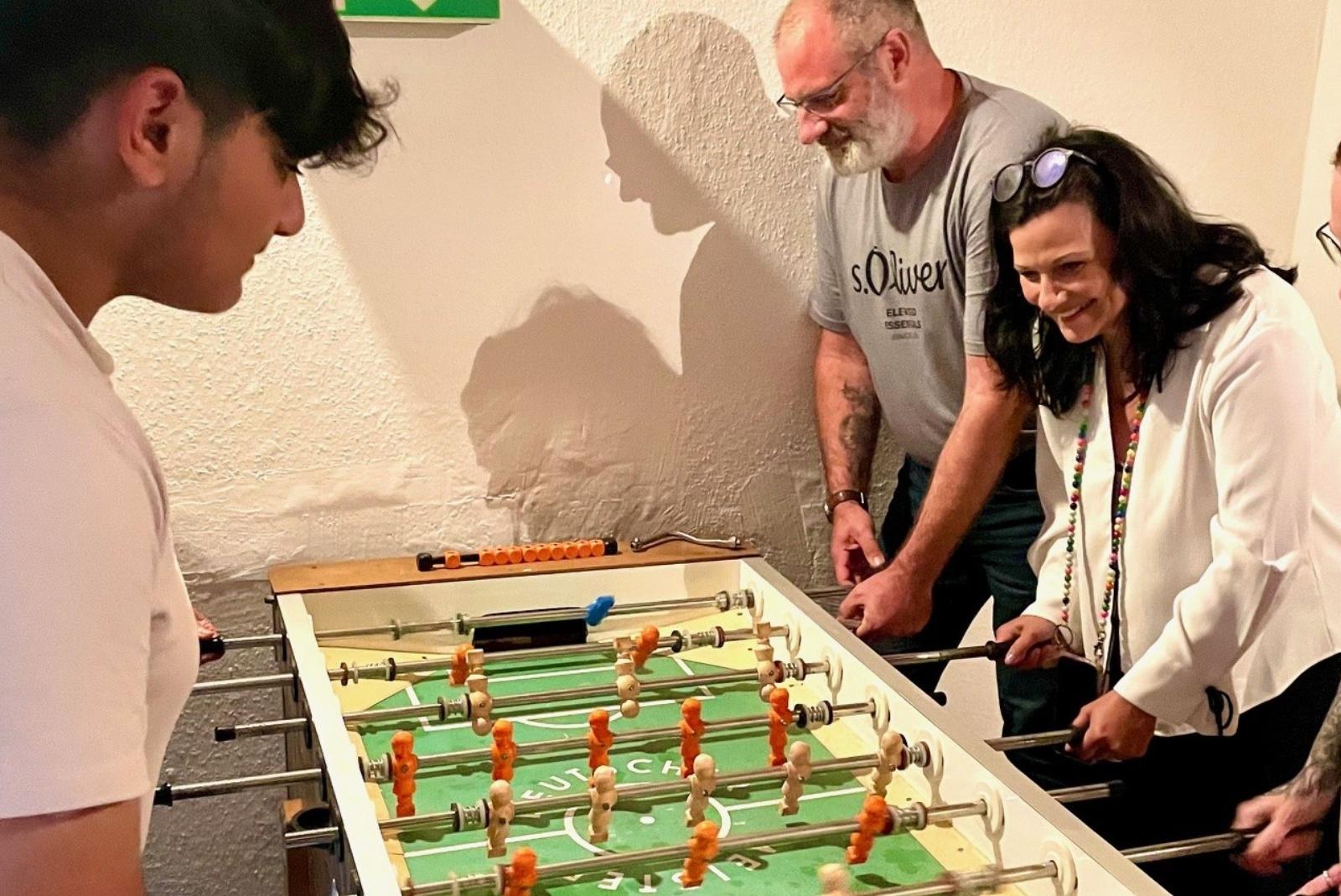 Eine Tischkicker-Partie gehörte zum Besuchsprogramm der CDU-Bundestagsabgeordneten Gitta Connemann (Zweite von rechts) im Bunder Jugendzentrum. © Foto: Büro Connemann