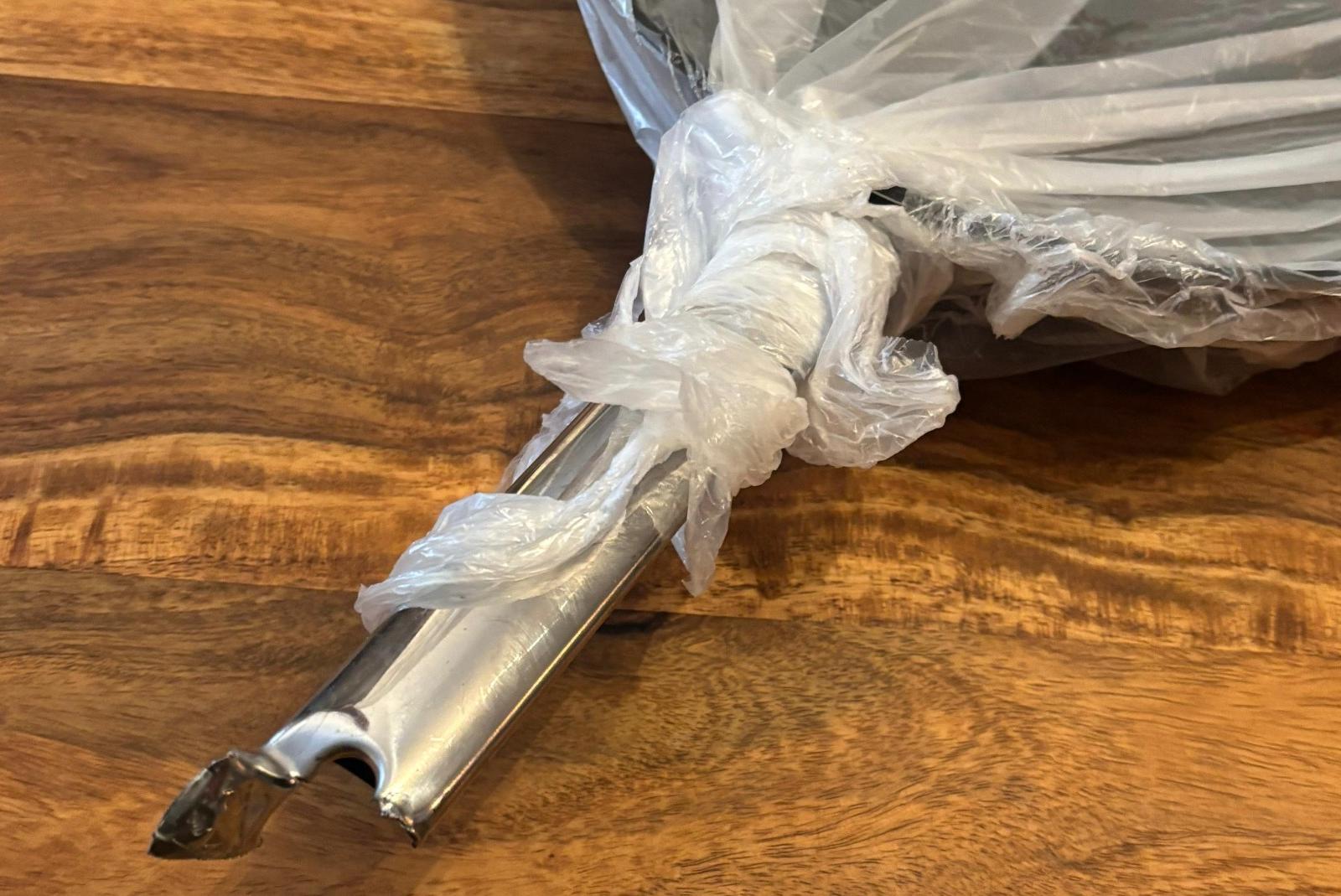 Der Haltegriff der Pfanne wurde von den Feuerwehrleuten mit einem Multifunktionswerkzeug vorsichtig aufgeschnitten. © Foto: Feuerwehr