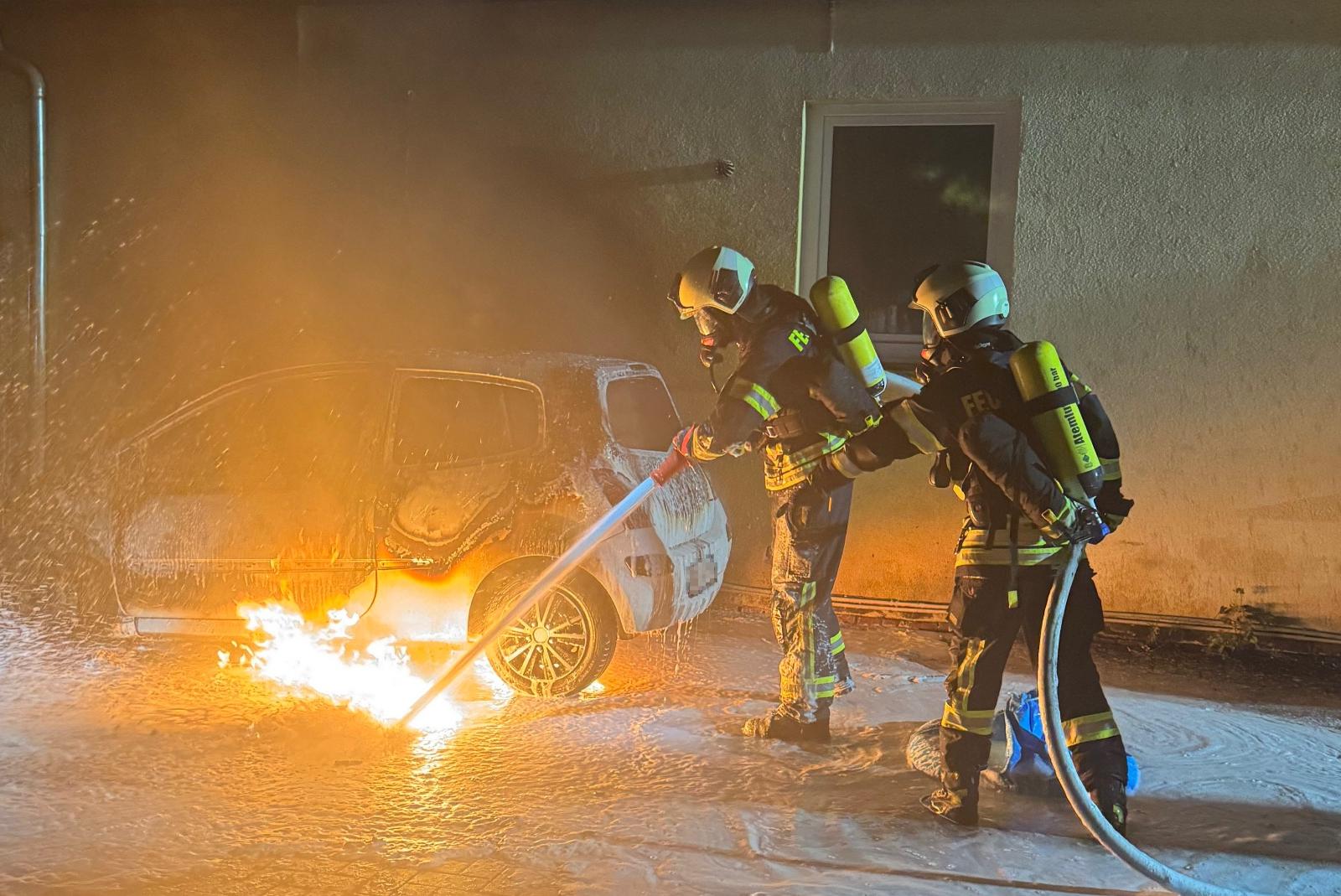 Fahrzeug wird völlig zerstört - Hausbewohner evakuiert