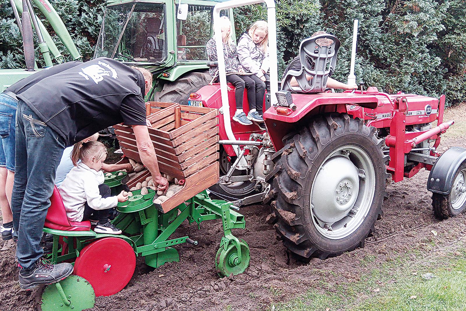 Einmal Kartoffeln pflanzen wie zu Großmutters Zeiten: Die Fans von alten Treckern machten es möglich.  © Foto:Janssen