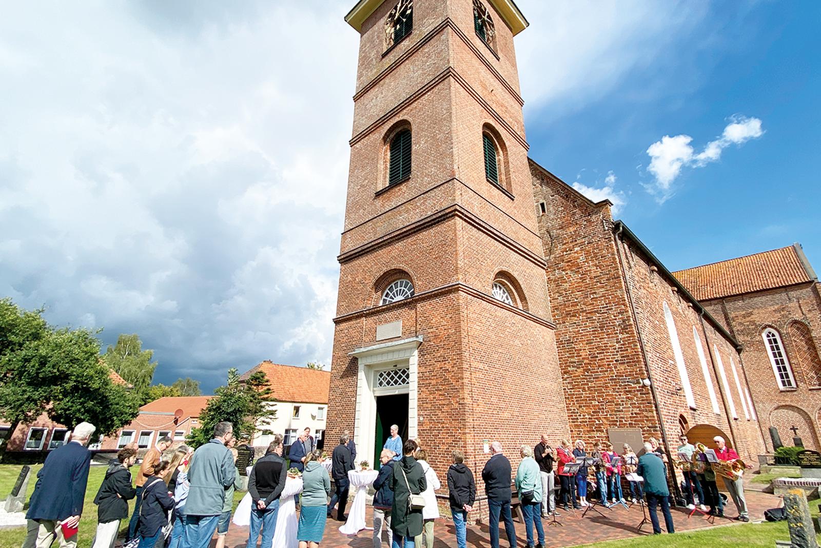 Der restaurierte Turm der reformierten Martins-Kirche in Bunde stand gestern am Tag des offenen Denkmals im Mittelpunkt des Interesse der Besucher. Kirchmeisterin Ulrike Groeneveld begrüßte stehend in Tür zahlreiche Gäste, darunter auch Bürgermeister Uwe Sap und ...