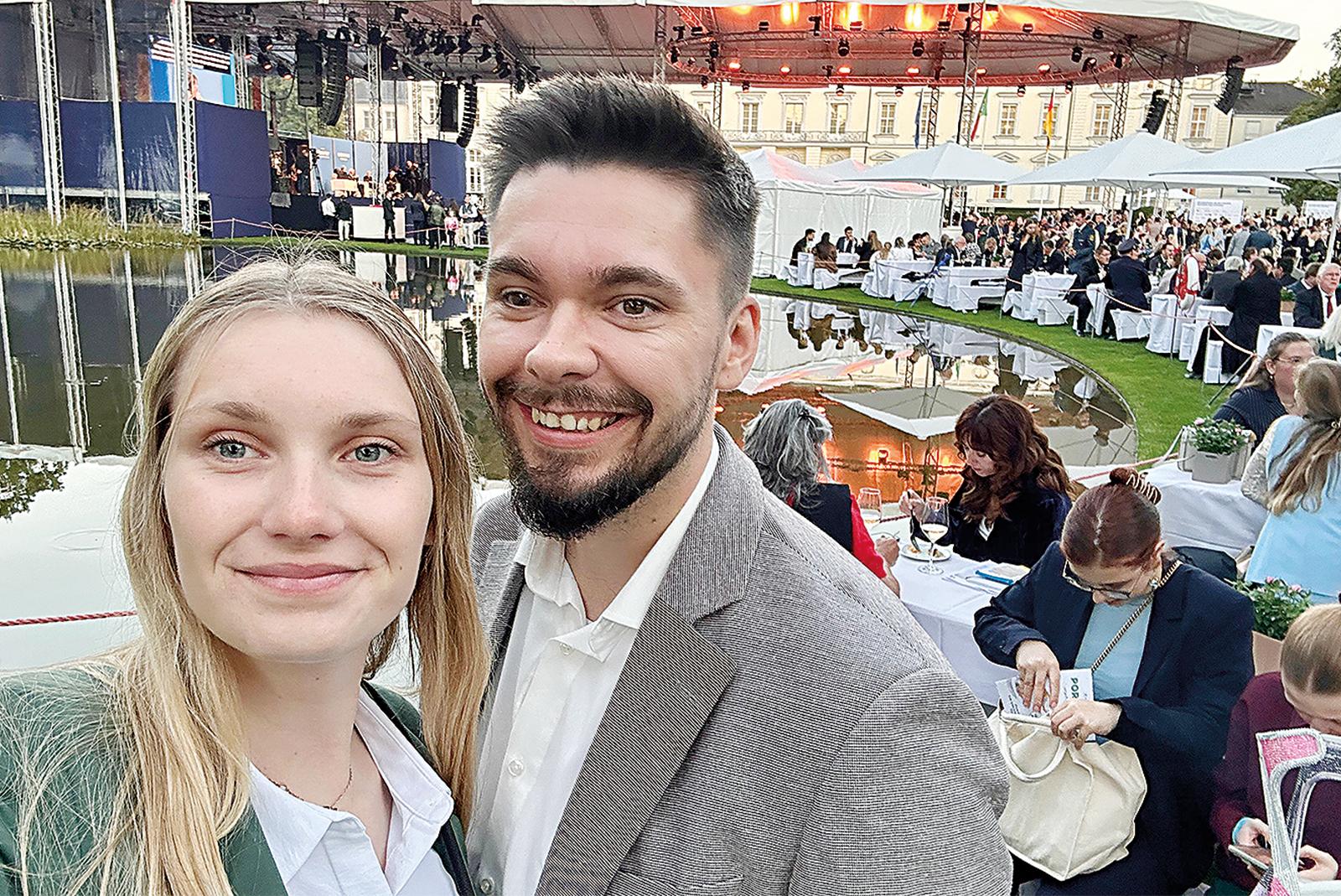 Ein Erinnerungsfoto vor eindrucksvoller Kulisse: Katja Hübner und ihr Ehemann Marek waren zu Gast beim Bürgerfest von Bundespräsident Frank-Walter Steinmeier in Berlin. © privat