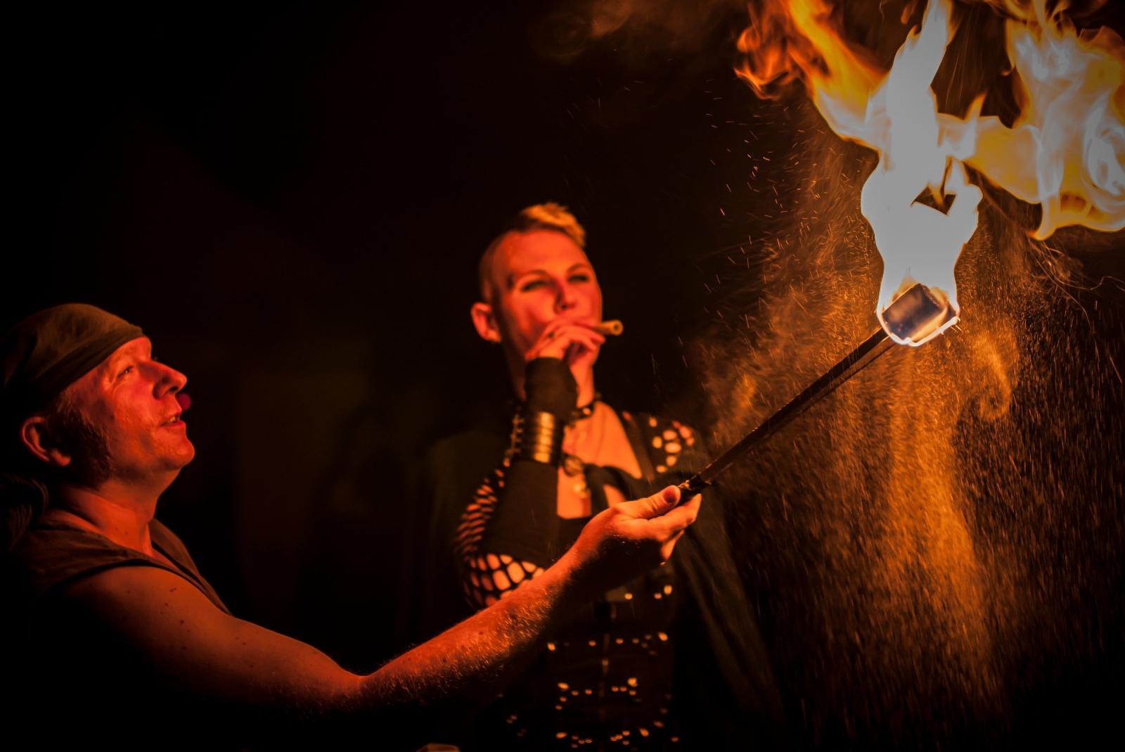 Die Feuershow auf dem Friesenmarkt im Stadtpark gehört zu den traditionellen Highlights des Michaelismarktes in Weener. © Foto: Penning (Archiv)