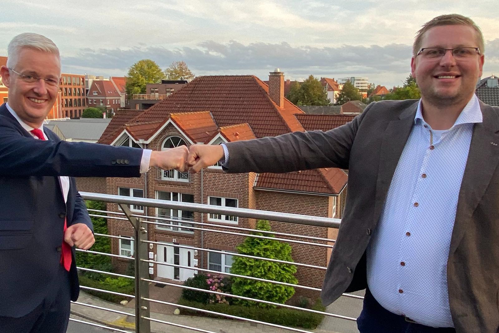 Traten schon bei der vergangenen Wahl gegeneinander an: Jens Völker (rechts) aus Bunde möchte anstelle von Amtsinhaber Matthias Groote Chef der Kreisverwaltung werden. © Archivfoto: Hanken