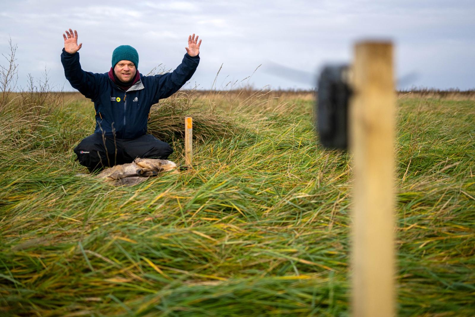 Auf einen grünen Schlitten lädt Benedikt Wiggering alles, was er gleich im Nationalpark Niedersächsisches Wattenmeer braucht: zwei Holzpfähle, einen langen Holzhammer, Kabelbinder, eine Kamera - und ein totes Reh, verpackt in einen blauen Plastiksack. »Wir haben ...