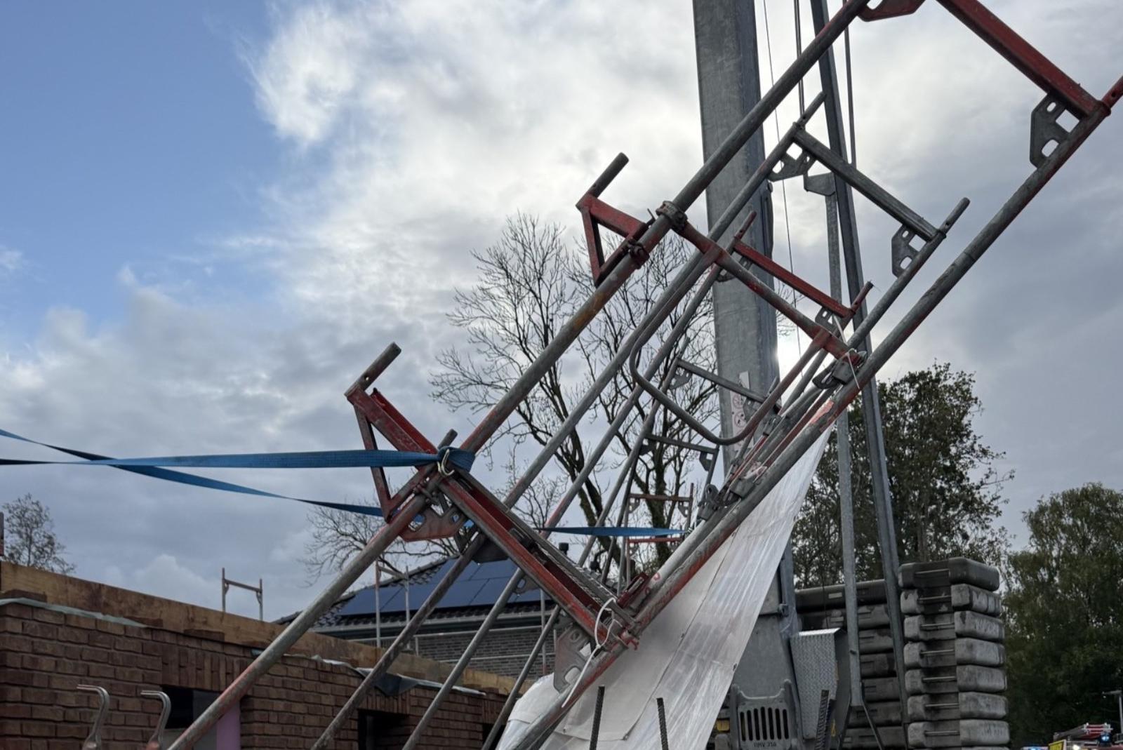 Mit Spanngurten musste das Gerüst gesichert werden. © Feuerwehr Aurich