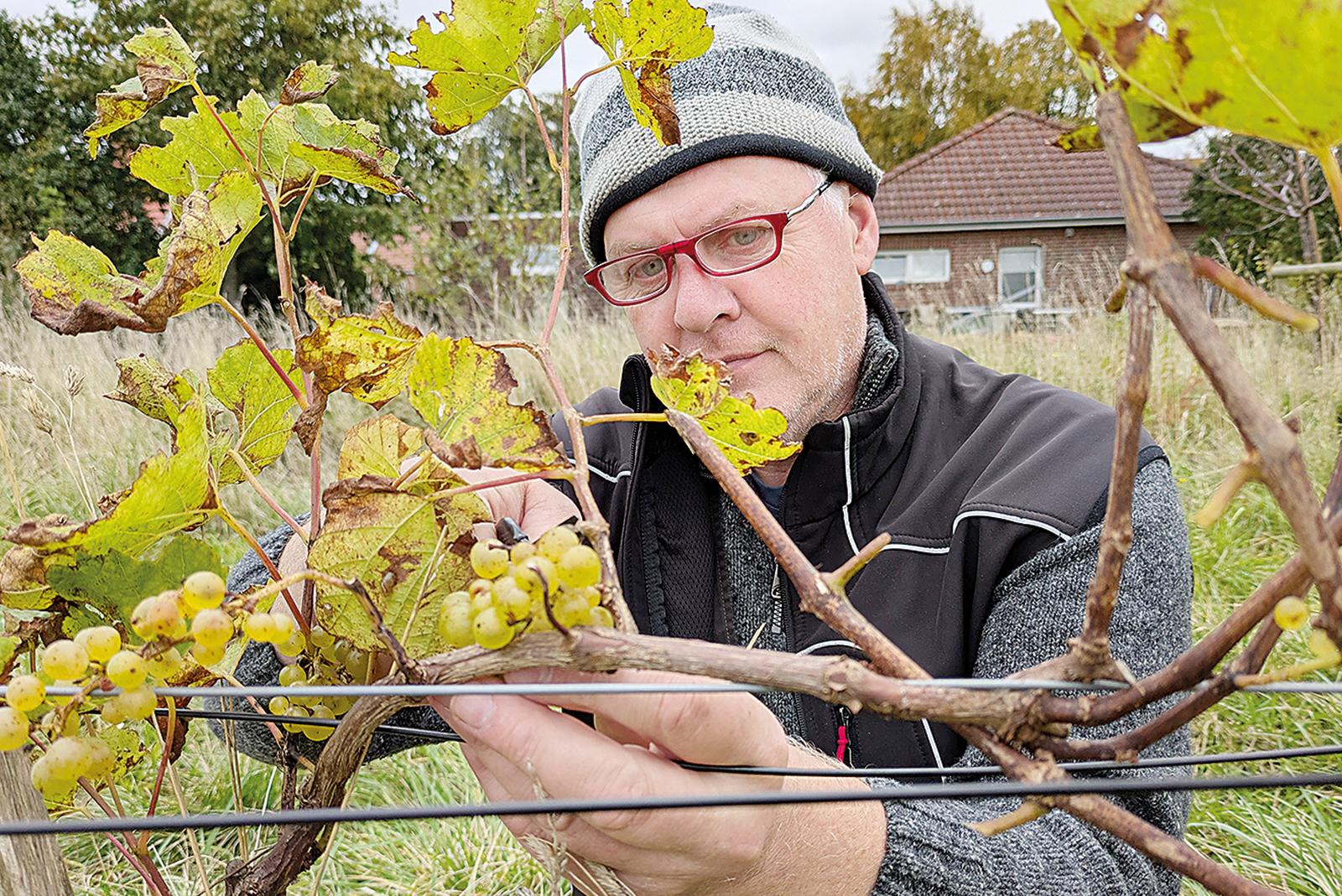Geht nicht, gibt’s nicht: Von einem Weinberg kann im Rheiderland zwar keine Rede sein, aber der Anbau für einen edlen Tropfen funktioniert auch auf dem platten Land in Ditzumerverlaat. Dort erntete Harbert Poppens dieser Tage die weißen ...