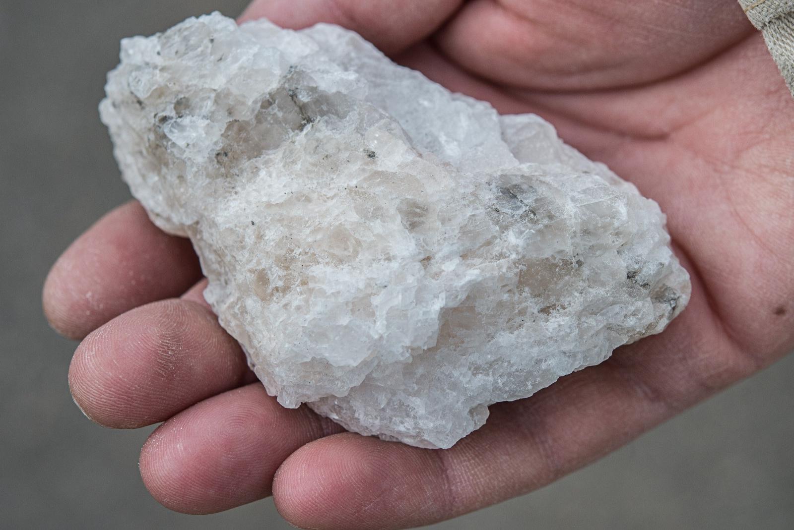 Ein Bergmann hält einen Brocken Steinsalz in der Hand.  © Symbolfoto: Kastl (dpa)