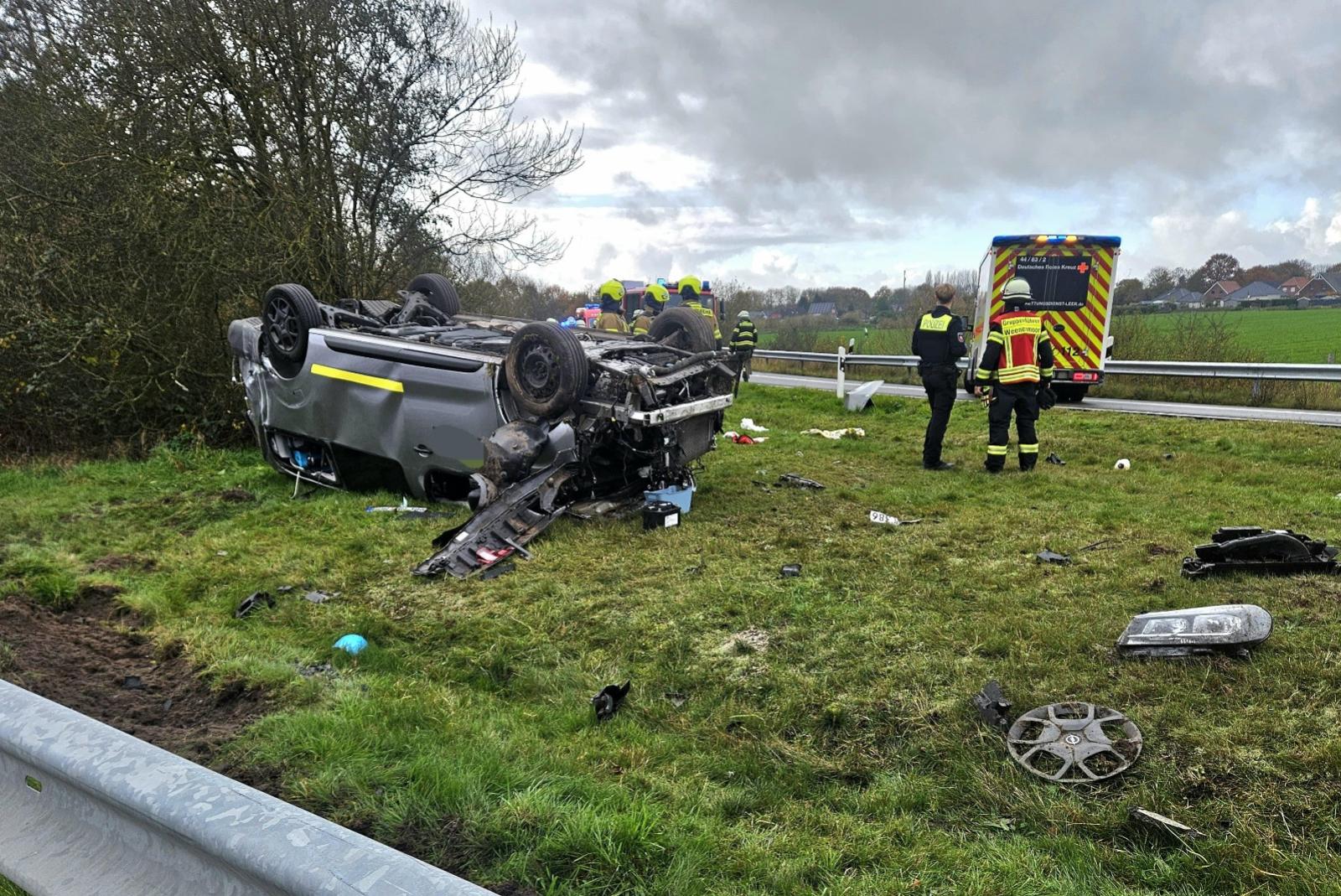 Auf der A 31 hat es heute Nachmittag einen Unfall in Höhe der Anschlussstelle Weener gegeben, sieben Menschen sind dabei verletzt worden. Wie ein Sprecher der Autobahnpolizei mitteilt, kam ein Kleinbus mit sieben Insassen gegen 12.36 Uhr aus bislang ungeklärter Ursache alleinbeteiligt nach rechts von der Fahrbahn ab und überschlug sich. Er kam auf der Rasenfläche der Autobahnabfahrt kopfüber zum Stehen. Zwei Menschen wurden schwer verletzt, fünf leicht. Alle wurden in umliegende Krankenhäuser gebracht.