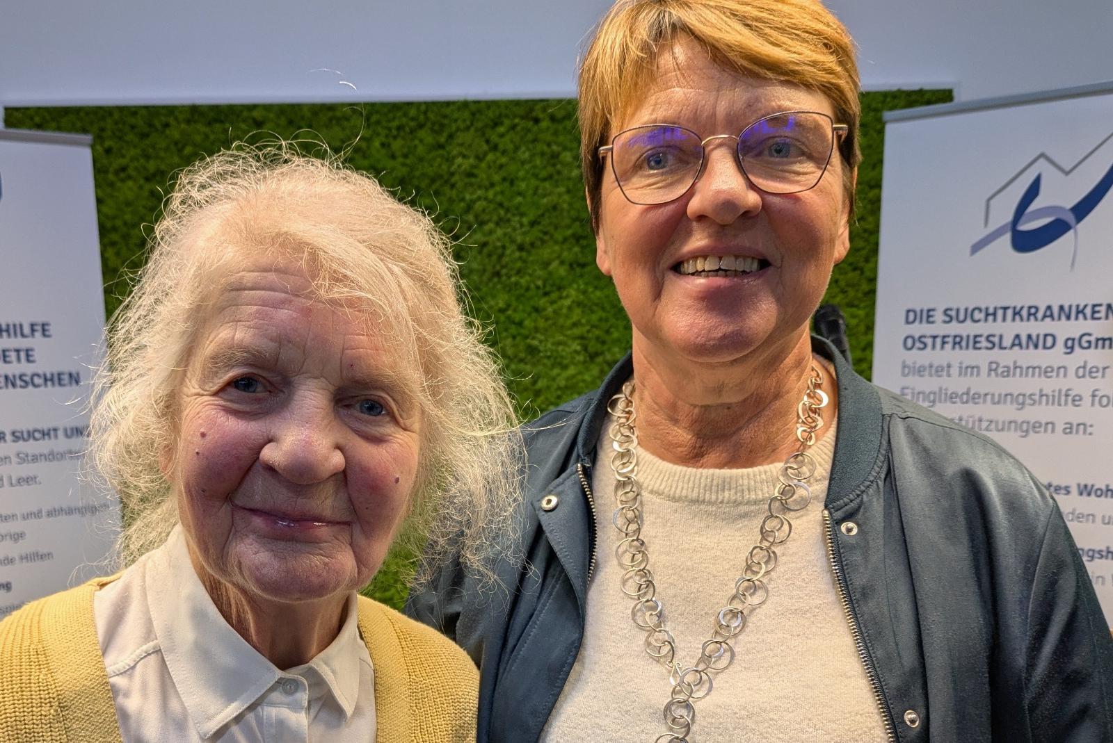 Meta Janssen-Kucz (rechts) freute sich sehr, mit Elisabeth de Boer aus Landschaftspolder die Mitgründerin und langjährige Vorsitzende der Drogenberatungsstelle Leer begrüßen zu können. © Foto: Szyska