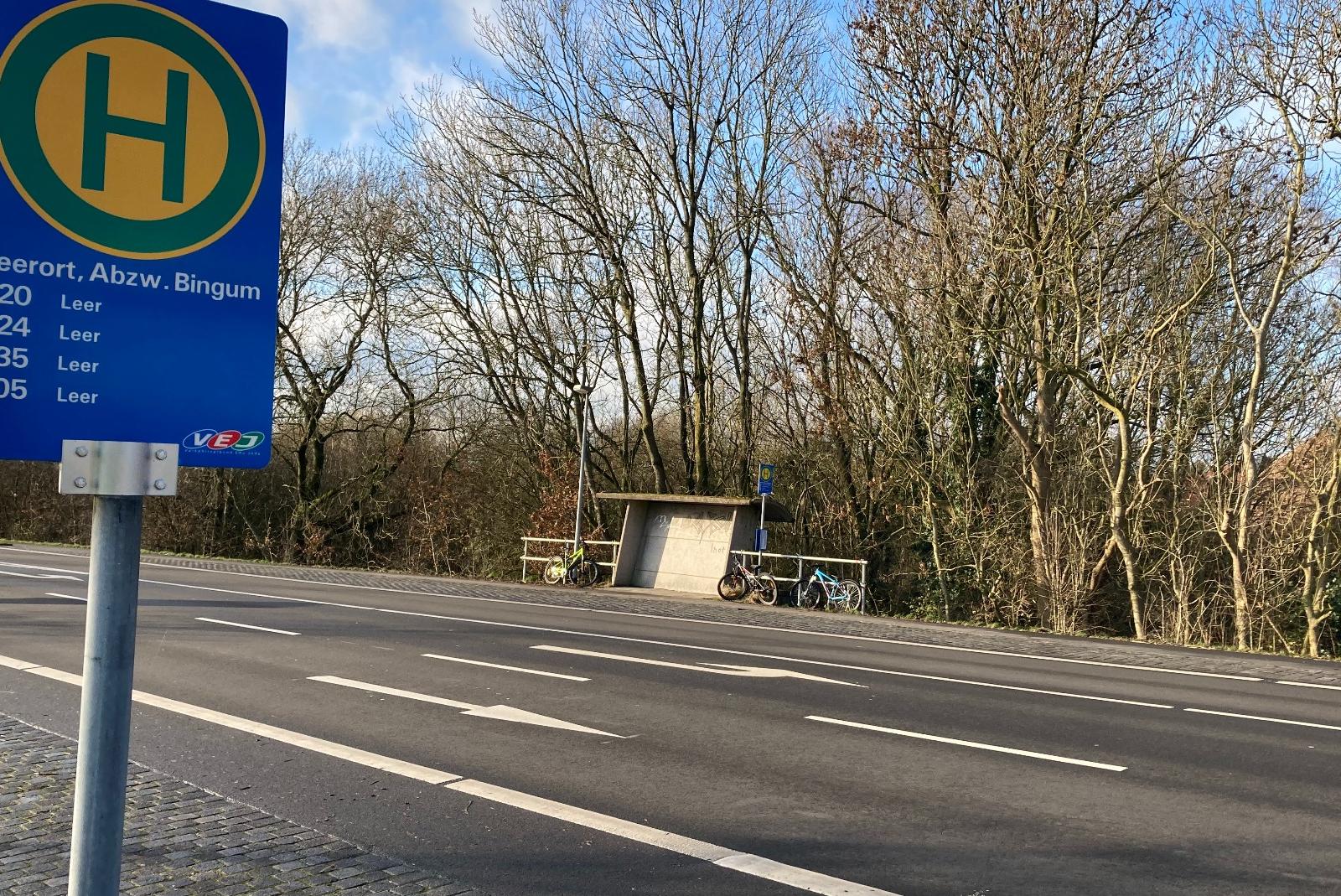 Für die abgerissene Bushaltestelle bei Bingum (Foto) kommt nun Ersatz. Die Arbeiten bringen Beeinträchtigungen für den Verkehr mit sich. © Boelmann (RZ-Archiv)